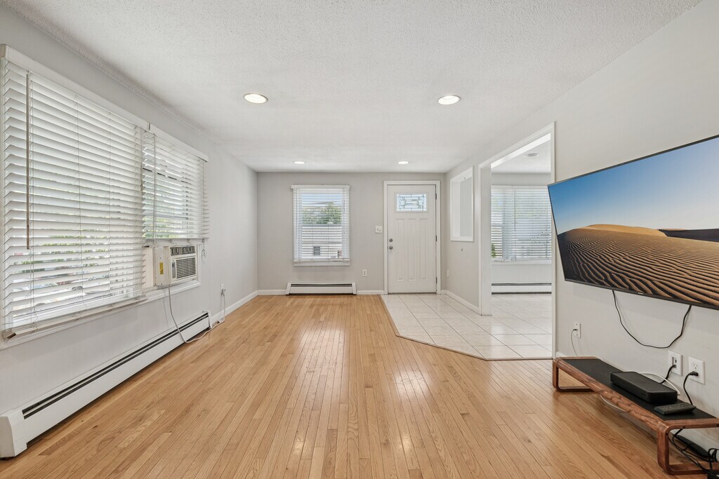 Sunny and well-kept 3-bed, 2-bath SINGLE FAMILY home in a beautiful treelined Pratville neighborhood. Main level includes,large living room, eat-in kitchen, two bedrooms, and a full bath. Oversized primary bedroom has a walk-in closet. Hardwood throughout.Lower level offers a full family room, third bedroom, office, bath, and laundry room, storage—plus private street-level entrance, ideal for an adult child, in-law, or shared living. Enjoy a spacious trex deck and patio off the kitchen, great for outdoor meals and gatherings. Perfect yard to entertain and two driveways provide plenty of parking . A flexible layout in a great location. Access to Downtown Boston, Logan, Mass General & Area Hospitals, Assembly Row, Encore, shopping, restaurants, parks, beaches,w/easy access to RT 1, RT 16, I-93, I-90 & Silverline to Seaport. FICO credit score 700+ required. Tenant pays,heat, electric,water and snow removal..3D tour here : . NO PETS ON THE AGGRESSIVE BREED LIST.