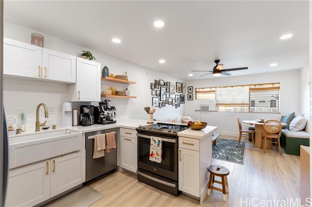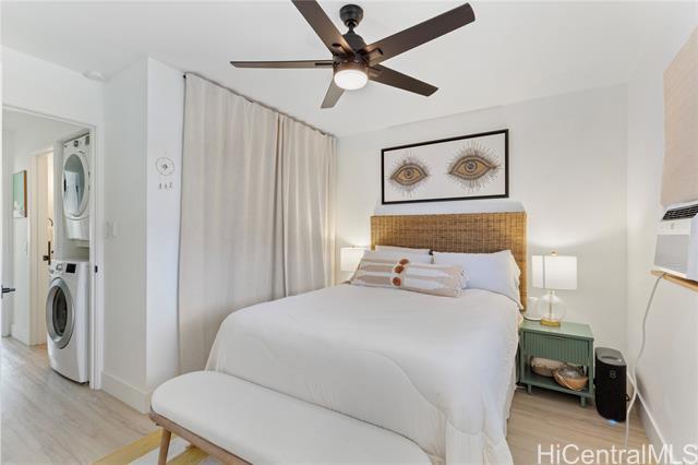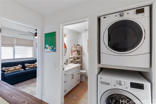 Welcome to this beautifully remodeled 2 bedroom, 1.5 baths Kailua condo. The unit is two stories with both bedrooms and a full bath on the second floor. The full kitchen has been upgraded with new appliances, new cabinets, backsplash, and granite countertops. This home also offers a window AC unit in the living room and in the larger bedroom, as well as an in-unit stacked washer and dryer on the second floor. It even has an assigned covered parking space plus a storage unit too! The building offers an elevator, lots of guest parking, community BBQ area, and a playground. Location is amazing - you are minutes from Kailua Beach, restaurants, post office, shopping, Whole Foods, and more! Plus there's even a private gate just for Koolau Vista residents that gives you quick access to Target. The Association only allows registered service animals. No smoking. $25 application fee and rental insurance is required. Please call or text Joy Tamangided with Windward Properties at or email at .