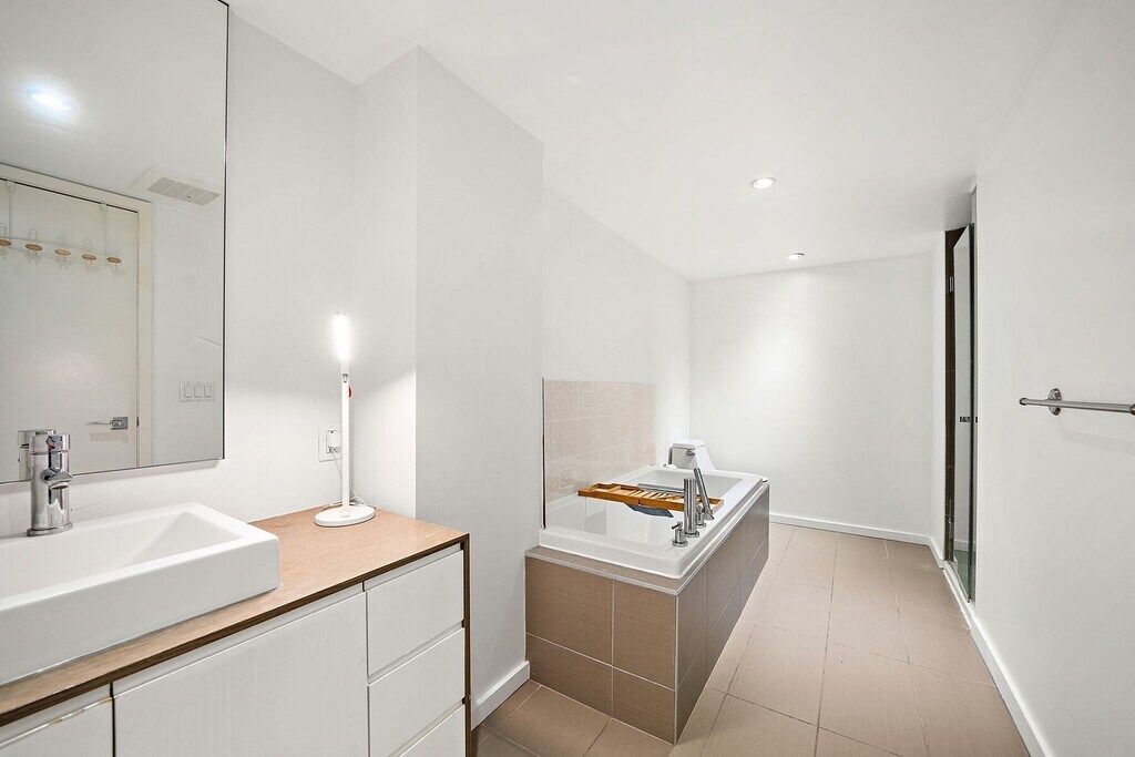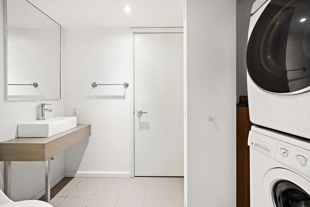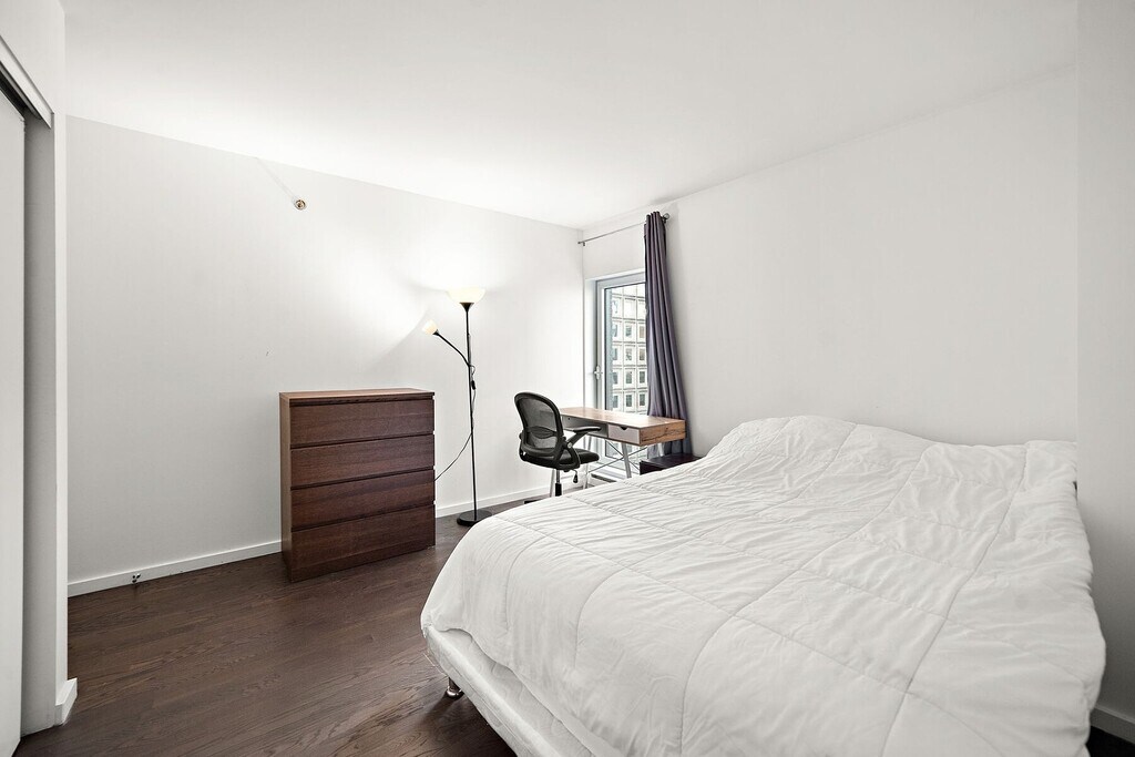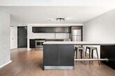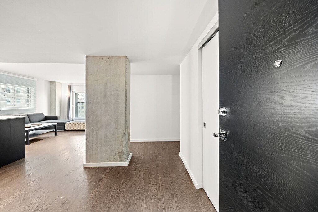 Modern apartment for rent in downtown Montréal. Featuring 2 bedrooms, one bathroom and one powder room, this unit offers a bright open-concept layout combining the kitchen, dining area and living room. The living room includes a convenient home office space hidden behind doors. The Louis Bohème building offers its residents a range of amenities, including a fitness room, a sauna, and a swimming pool. Located in the heart of downtown, the neighbourhood offers a wide range of amenities and activities, with plenty of shops and restaurants nearby and the Place-des-Arts metro station just steps away.