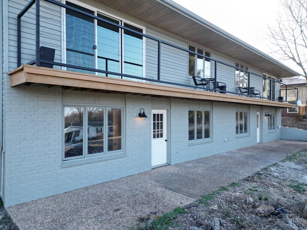 Located less than five minutes from Campbell Point Marina,with the option to lease a boat slip,this fully-furnished duplex (including washer & dryer!) offers the ultimate lake lifestyle! Each unit features three bedrooms and 2.5 baths,including two primary suites with ensuite baths,an open-concept main level with kitchen,dining,and living area,plus an additional living space on the lower level. Lower-level utility rooms add convenience,while the deck with a privacy divider provides an outdoor retreat for views of Table Rock Lake. The property sits on a large lot of over half an acre and includes a generous gravel parking area accommodating up to four vehicles,ideal for guests or renters.