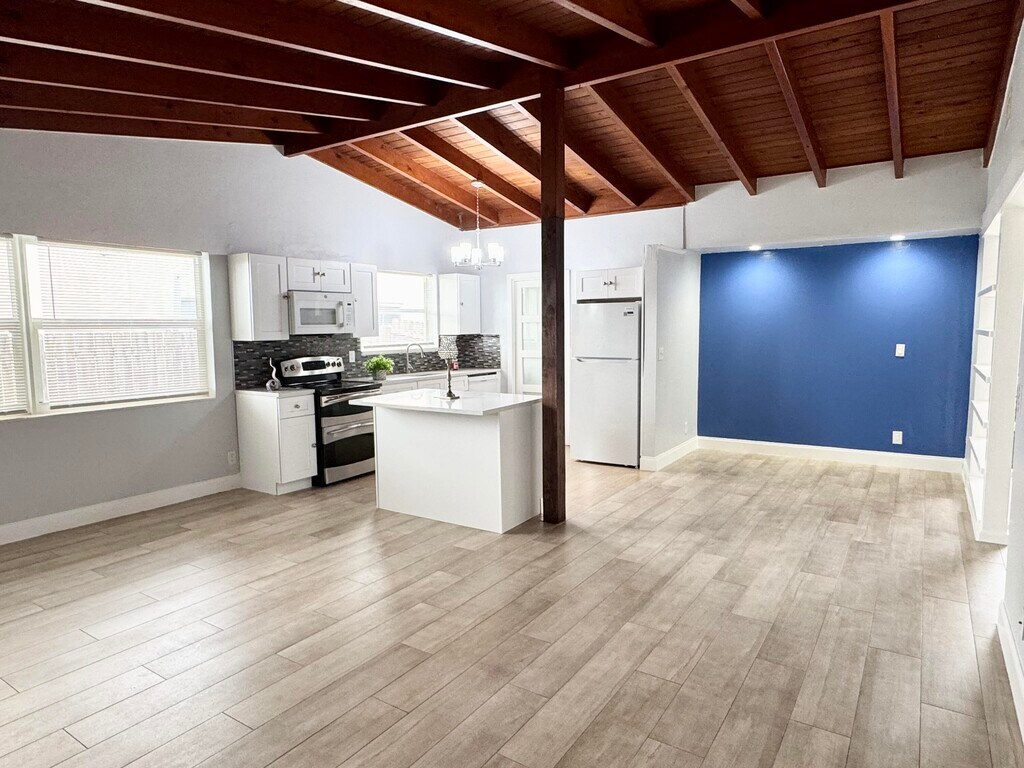 Fully renovated single family home available for rent featuring 3 bedrooms and 1 bathroom. RENT INCLUDES AN EFFICIENCY with an independent entrance,fully equipped with a refrigerator,kitchen countertop,microwave,and a full bathroom. You can bring your king size bedroom set. Property offers a large fenced patio with mature mango trees. Space available for boat parking. Conveniently located approximately 2 miles from Peanut Island and Lake Park Harbor Marina. Close to shopping,dining,and local amenities. Turnkey and move-in ready. MLS ID R11150096