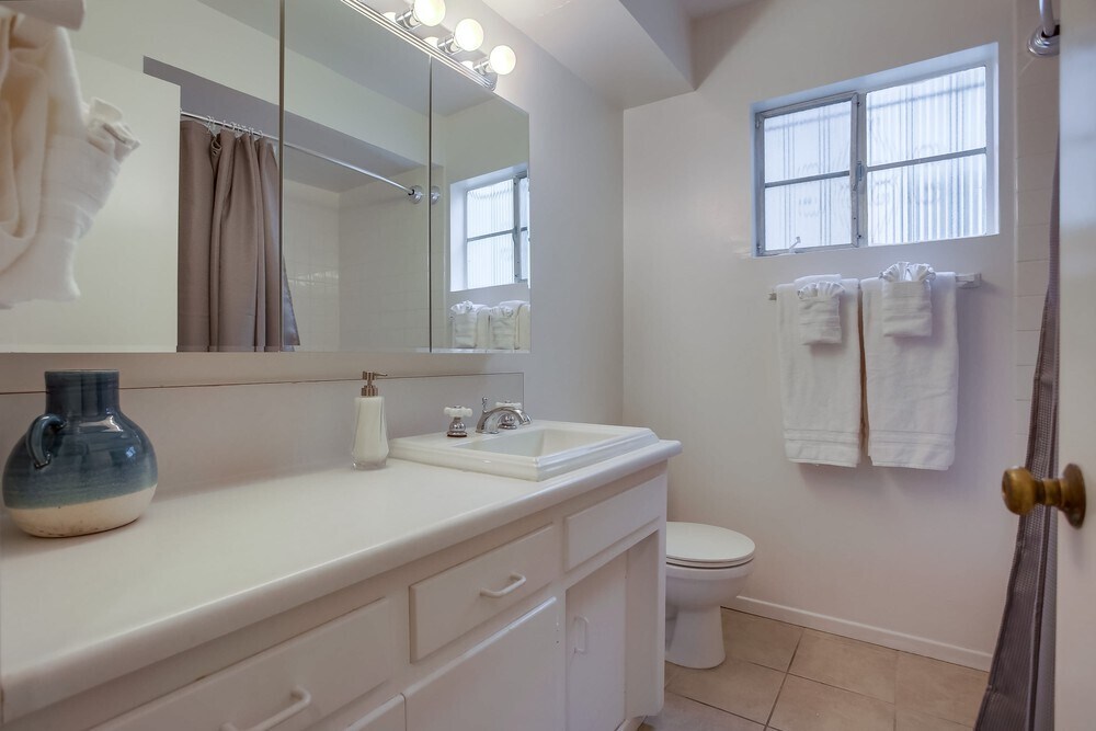 SUMMARY Enjoy beach living in this designer 2br+1ba beach home located in the heart of La Jolla, less than 1 block to famous Windansea surf/swim friendly beach. Other highlights include convenient ground level unit, professional coastal design, wood flooring, Samsung SMART TVs, garage parking, dogs ok, & sleeps 6 including dual Cal King beds. *Note no A/C, but floor fans are provided. INTERIOR As you enter this convenient ground level designer home, you'll step into a spacious main living area with beautiful new wood floors, plush sofa bed, accent chairs, & new Samsung SMART TV. *Note, fireplace not operational. Off the living room is a separate dining area as well as a fully equipped kitchen with stainless steel appliances & access to the side walkway. Both bedrooms feature a huge Cal King sized bed with a high end new plush mattress & Samsung SMART TVs. Off the hallway is a full bath (tub/shower combo). PARKING 1 Garage parking space, approx. dimensions 7'11"w x 6.5'h x 18'deep. Nearby overnight street parking is permitted at no fee. BED & BATH ARRANGEMENTS (sleeps 6) Bedroom #1 | 1 Cal King (sleeps 2) + Samsung SMART TV Bedroom #2 | 1 Cal King (sleeps 2) + Samsung SMART TV Living Room | 1 double sofa sleeper (sleeps 2) + Samsung SMART TV Hallway | 1 full bath (tub/shower combo) OTHER FEATURED HIGHLIGHTS Professionally designed by Blue Grape studio, with coastal touches throughout TVs in all rooms Dogs ok! 2 small or 1 large Shared Washer/Dryer located towards the rear of the property (coin operated) Beach chairs, boogie boards, & beach towels * NOTE fireplace not operational LOCATION Beautiful Windansea Beach! Our home is located in a laid back beach La Jolla community of Windansea, a great family friendly area with a white sandy surf/swim friendly beach and local eats just a short walk away! Sneak peek: Dining Some of our favorite nearby eateries include Busy Bees bagels, Bird Rock Coffee Roasters, LJ Crafted Wines, Wheat & Water wood-fired pizza, & Duke's La Jolla family eatery. Also just a few blocks to Valley Farm organic grocery market & butchery shop. Activities Within 1 block to famous Windansea beach, which is both surf and swim friendly. Also nearby visit La Jolla Cove, with great snorkeling, swimming, & kayaking. Attractions Just a few minutes away is the Village of La Jolla, with endless shops & entertainment. A quick Uber ride South will get you to Belmont Park's big dipper coaster and all new Plunge pool. Other attractions include ~10min drive to Sea World, over the hill is ~20min drive to the famous San Diego Zoo, and just ~15min drive to Del Mar fairgrounds and racetrack. POLICIES & GOOD NEIGHBOR GUIDELINES NOISE | Our homes are intended for relaxing getaways, not rowdy beach parties. Music and other noise is to be kept at an appropriate level and in a manner that is mindful to neighbors. Noise that can be heard 50 feet away from the home is prohibited. Parties are not allowed. *6 MONTH LEASES ONLY *TENANT REQUIREMENTS | Tenant will be required to fill out and sign the Tenant Income Questionnaire from the San Diego Housing Commission. *NEIGHBORHOOD CONSTRUCTION | There is an ongoing construction project occurring nearby (not on this property) at the far east corner of Gravilla St. Work hours are limited to 7am-5pm, expected completion date unknown. SUMMARY Enjoy beach living in this designer 2br+1ba beach home located in the heart of La Jolla, less than 1 block to famous Windansea surf/swim friendly beach. Other highlights include convenient ground level unit, professional coastal design, wood flooring, Samsung SMART TVs, garage parking, dogs ok, & sleeps 6 including dual Cal King beds. *Note no A/C, but floor fans are provided. INTERIOR As you enter this convenient ground level designer home, you'll step into a spacious main living area with beautiful new wood floors, plush sofa bed, accent chairs, & new Samsung SMART TV. *Note, fireplace not operational. Off the living room is a separate dining area as well as a fully equipped kitchen with stainless steel appliances & access to the side walkway. Both bedrooms feature a huge Cal King sized bed with a high end new plush mattress & Samsung SMART TVs. Off the hallway is a full bath (tub/shower combo). PARKING 1 Garage parking space, approx. dimensions 7'11"w x 6.5'h x 18'deep. Nearby overnight street parking is permitted at no fee. BED & BATH ARRANGEMENTS (sleeps 6) Bedroom #1 | 1 Cal King (sleeps 2) + Samsung SMART TV Bedroom #2 | 1 Cal King (sleeps 2) + Samsung SMART TV Living Room | 1 double sofa sleeper (sleeps 2) + Samsung SMART TV Hallway | 1 full bath (tub/shower combo) OTHER FEATURED HIGHLIGHTS Professionally designed by Blue Grape studio, with coastal touches throughout TVs in all rooms Dogs ok! 2 small or 1 large Shared Washer/Dryer located towards the rear of the property (coin operated) Beach chairs, boogie boards, & beach towels * NOTE fireplace not operational LOCATION Beautiful Windansea Beach! Our home is located in a laid back beach La Jolla community of Windansea, a great family friendly area with a white sandy surf/swim friendly beach and local eats just a short walk away! Sneak peek: Dining Some of our favorite nearby eateries include Busy Bees bagels, Bird Rock Coffee Roasters, LJ Crafted Wines, Wheat & Water wood-fired pizza, & Duke's La Jolla family eatery. Also just a few blocks to Valley Farm organic grocery market & butchery shop. Activities Within 1 block to famous Windansea beach, which is both surf and swim friendly. Also nearby visit La Jolla Cove, with great snorkeling, swimming, & kayaking. Attractions Just a few minutes away is the Village of La Jolla, with endless shops & entertainment. A quick Uber ride South will get you to Belmont Park's big dipper coaster and all new Plunge pool. Other attractions include ~10min drive to Sea World, over the hill is ~20min drive to the famous San Diego Zoo, and just ~15min drive to Del Mar fairgrounds and racetrack. POLICIES & GOOD NEIGHBOR GUIDELINES 