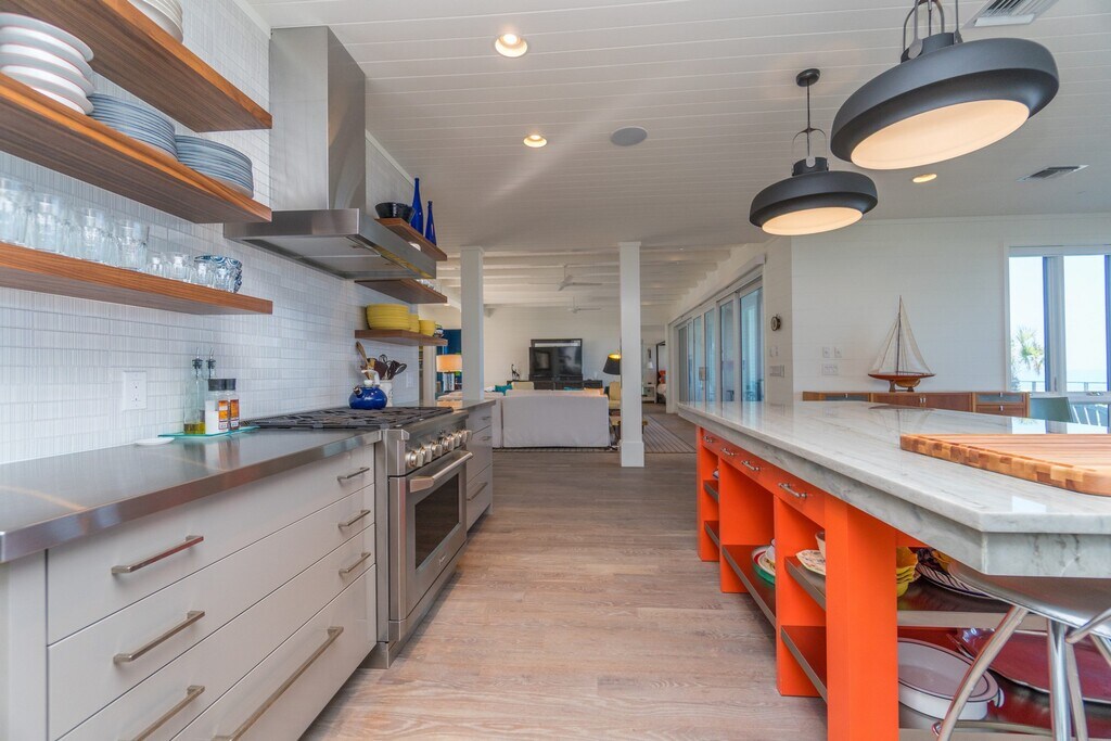 Exquisite landscaping greets you as enter this home. Once inside, incredible Gulf views can be seen from almost every room in the house. The open floor plan and large pool deck are ideal for entertaining or relaxing after a day in town, at the beach, or on the water. The house is also equipped with an elevator, for ease and convenience.