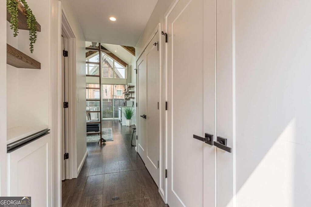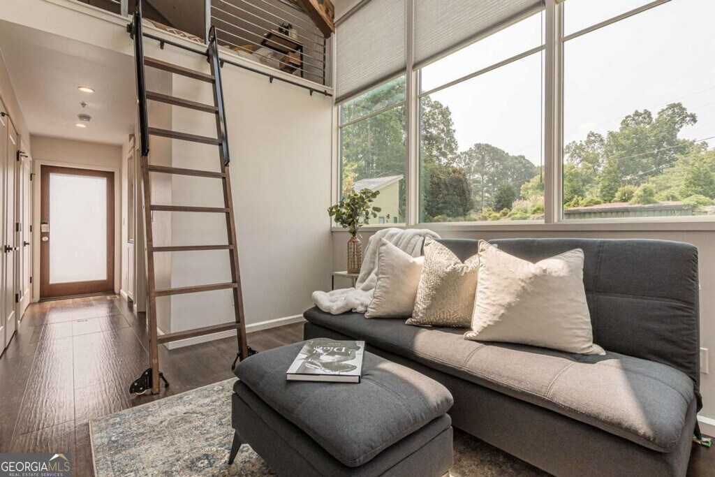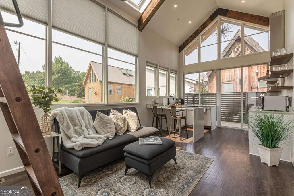 Welcome to the vibrant Live-Work-Create community of Town at Trilith, where innovative and sustainable living thrives! Nestled within this inspiring community is an exceptional, well-constructed, and energy-efficient tiny home that sets the bar for modern, eco-conscious living. Amongst the small cluster of other tiny homes, his tiny home is a harmonious blend of creativity, functionality, and environmental responsibility. It was carefully designed by architects and eco-conscious builders to make the most of every inch of space without compromising on comfort or style. The exterior boasts an attractive and contemporary design, utilizing recycled and sustainable materials to reduce its environmental footprint. Step inside, and you'll be amazed by the clever layout that optimizes every square foot. The open-plan living area seamlessly flows into a compact, but fully equipped, kitchen featuring energy-efficient appliances, low-flow fixtures, and stone countertops and no shortage of natural light! The large windows allow natural light to flood in, reducing the need for artificial lighting during the day. The living area doubles as a functional workspace, complete multipurpose furniture and storage solutions to keep the space clutter-free. High-speed internet connectivity is readily available, catering to the needs of remote workers and digital creatives in the community. Venturing further up the stairs into the tiny home, you'll discover a cozy bedroom loft thoughtfully designed to provide a tranquil retreat for restful nights. A key feature of this tiny home is its seamless integration with nature. A green roof adorned with native plants not only enhances the visual appeal but also improves insulation, reduces stormwater runoff, and provides a habitat for local wildlife. Outdoors, the tiny home has a charming private deck space or enjoy some s'mores your neighbors at the shared fire-pit. As part of the Live-Work-Create community, the residents have access to shared amenities such as a communal garden, co-working spaces, and recreational areas. Regular workshops and events centered around sustainable living, art, and creative expression foster a sense of camaraderie and inspiration among the residents.