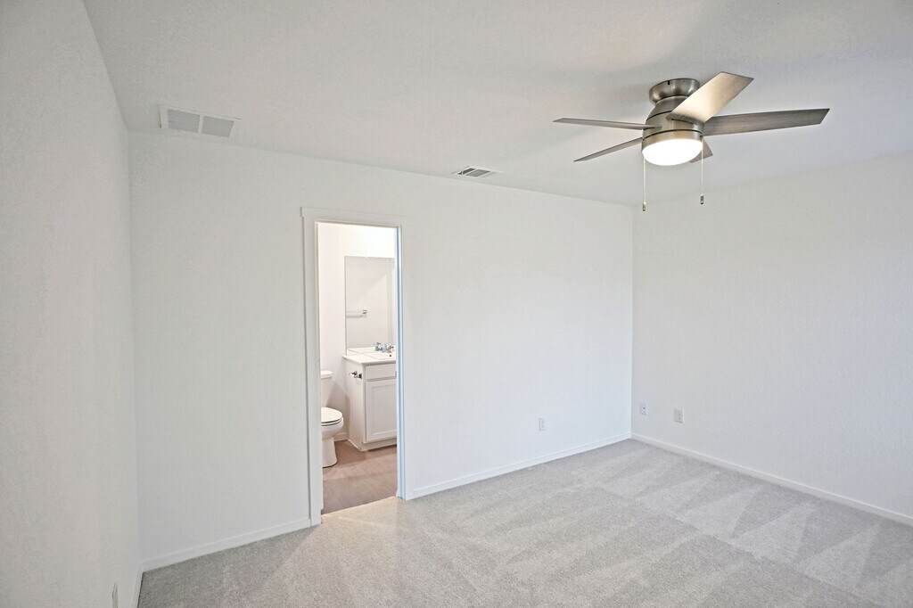 Make yourself at home in Grace Valley Ranch with this adorable 3-bedroom, 2-bathroom new construction in a split bedroom configuration. The open floor plan flows seamlessly from the spacious living area to the kitchen, equipped with stainless steel appliances. All three bedrooms feature fresh carpeting, ceiling fans, and ample closet space. The primary suite is a true retreat, complete with a private bath, walk-in shower and walk-in closet. Overlook the greenbelt in the spacious private backyard with plenty of room for relaxation or entertainment. Make yourself at home in Grace Valley Ranch with this adorable 3-bedroom, 2-bathroom new construction in a split bedroom configuration. The open floor plan flows seamlessly from the spacious living area to the kitchen, equipped with stainless steel appliances. All three bedrooms feature fresh carpeting, ceiling fans, and ample closet space. The primary suite is a true retreat, complete with a private bath, walk-in shower and walk-in closet. Overlook the greenbelt in the spacious private backyard with plenty of room for relaxation or entertainment.