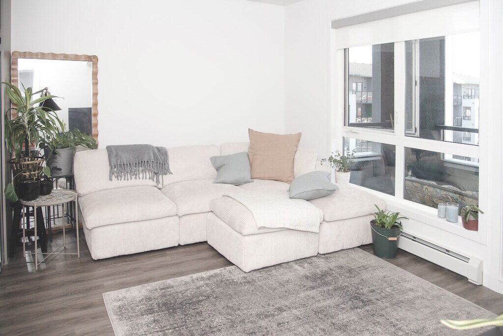 1 BEDROOM + DEN CONDO WITH A/C & UNDERGROUND PARKING! 4th Floor Condo Living in Vibrant Livingston – Modern Comfort & City Convenience Welcome to your new home in the thriving community of Livingston, where style, comfort, and convenience come together effortlessly. This top-floor condo offers the best of both worlds — a peaceful, elevated living space with easy access to major highways, making commutes and city adventures a breeze. Step inside to discover a thoughtfully designed layout featuring a spacious primary bedroom, and a modern 4-piece bathroom. The open-concept living area is enhanced by contemporary finishes, including sleek wood-style cabinetry, gleaming stainless steel appliances, and the added convenience of in-suite laundry. Natural light floods the space, giving it a warm and inviting feel — ideal for both relaxing evenings and entertaining guests. Beyond your unit, the building impresses with a stylish, modern lobby that sets the tone from the moment you arrive. Pet lovers will appreciate the outdoor dog park, offering a perfect spot for your furry companion to stretch and socialize.
