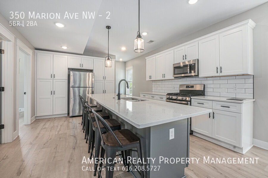 AVAILABLE JULY 2026! Check out this newly renovated duplex near Bridge St! The kitchen alone blows you away. The awesome upper unit has 5 great bedrooms, a large living room, two full bathrooms, has central air conditioning and includes water. Lawn maintenance and snow removal included in the cost of rent! With its location near Lincoln Park, Bridge St and the bus stops to get to GVSU/Downtown. You will not want to miss out on this one! Check out the rest of our available properties at american- Lawn Range Stove