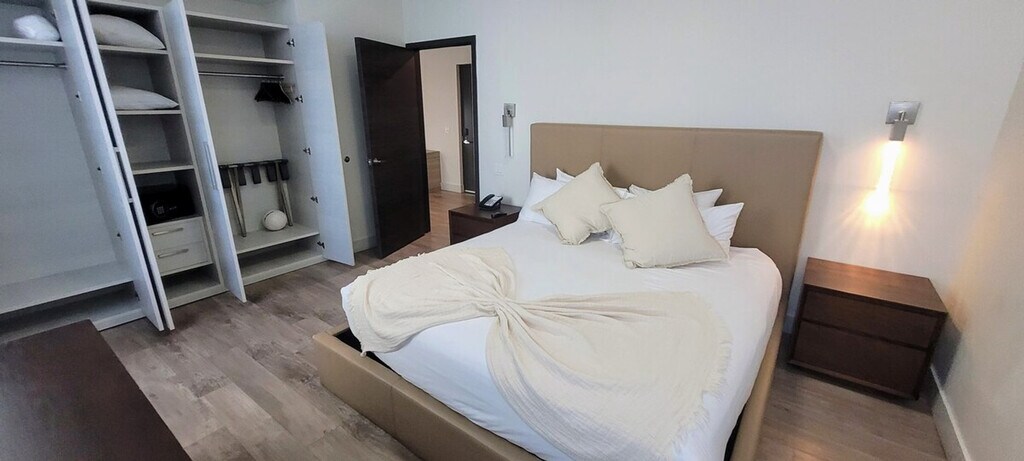 Feel at home in this stylish 1-bedroom apartment at Costa Hollywood Beach Resort, perfect for couples or solo travelers looking to unwind just steps from the ocean. This bright, modern 678 sq. ft. apartment features a king-size bed and a serene balcony view. The living room includes a cozy sofa bed for extra guests. The fully equipped kitchen is perfect for quick meals or extended stays. Enjoy fast Wi-Fi, ideal for streaming or remote work, and a smart TV. Valet parking is available for $44.94 per night (regular) or $84.00 (large). Pets are welcome with a fee of $100 per pet. Located on the beach and the famous Hollywood Broadwalk, this apartment is within walking distance of top dining spots, boutique shopping, and vibrant nightlife. This is a privately owned unit, so there are no hotel services like housekeeping or room service. Shared laundry rooms are available for $2.50 per load. A noise monitoring system is in place, but there are no cameras inside. [SI]