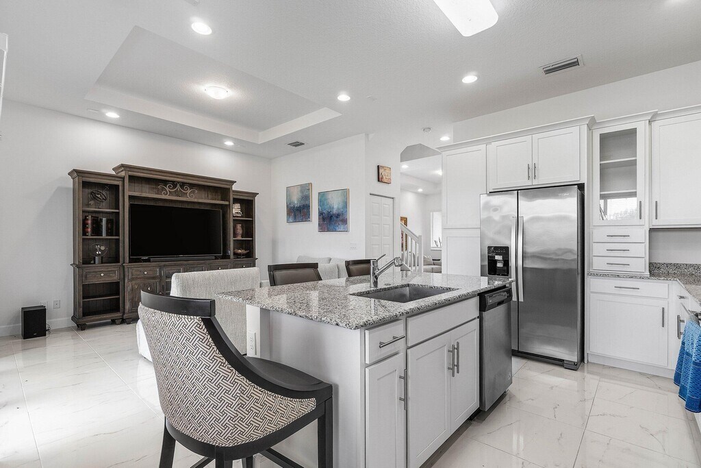 Beautiful turnkey, fully furnished corner-unit rental offering 4 bedrooms, 3.5 bathrooms, and spacious two-story living. This upgraded townhome features an open floor plan, luxury vinyl flooring, stainless steel appliances, a large kitchen island, and elegant cabinetry. All bedrooms offer great closet space, and the home is equipped with impact windows, doors, and sliders for added security and peace of mind.