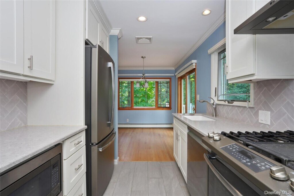 Nestled at the end of a quiet cul-de-sac,this beautifully updated Ranch offers the perfect blend of privacy and charm in a serene wooded setting. The main level features gleaming hardwood floors and updated windows including wood trimmed bay windows throughout. A sun-drenched living room with a striking stone-surround gas fireplace,opens to the dining area with access to a two-tier Trex deck - ideal for entertaining or relaxing in nature. The kitchen is a chef’s dream,boasting granite countertops,tile flooring and backsplash,and stainless steel appliances. Down the hall is the primary bedroom,two additional bedrooms,one with an updated full bath,and a hall bath with a granite vanity and a tiled walk-in shower. Downstairs,the finished lower level offers a versatile family room with walk-out access,a laundry area,and two additional rooms perfect for a home office,gym,or guest space. This home is a true retreat with modern comforts and timeless appeal. Based on information submitted to the MLS GRID as of [see last changed date above]. All data is obtained from various sources and may not have been verified by broker or MLS GRID. Supplied Open House Information is subject to change without notice. All information should be independently reviewed and verified for accuracy. Properties may or may not be listed by the office/agent presenting the information. Some IDX listings have been excluded from this website. Prices displayed on all Sold listings are the Last Known Listing Price and may not be the actual selling price.