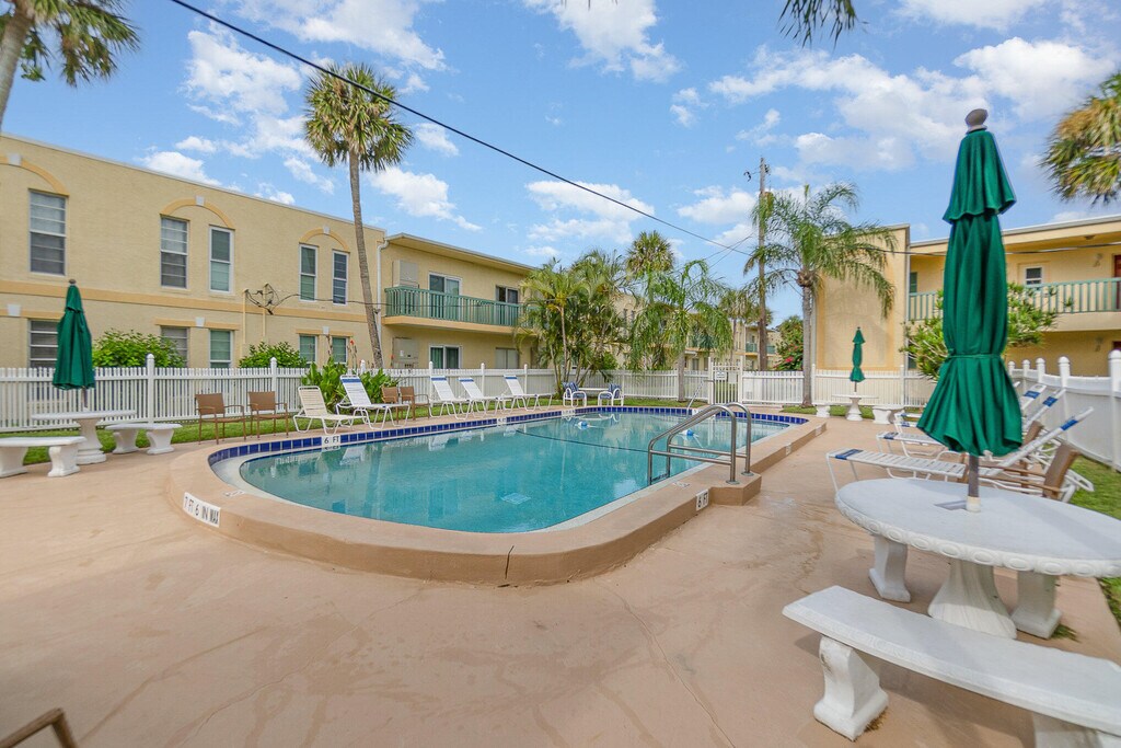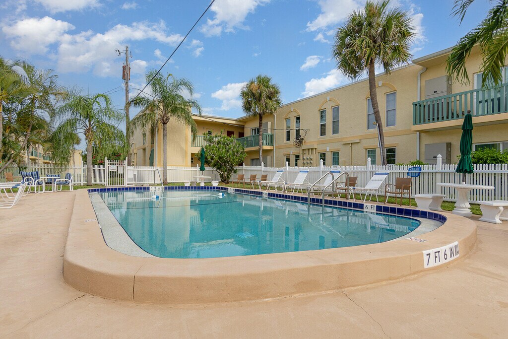 Prime location! This stunning,fully renovated 1 bedroom,1 bath beachside condo is just 2 blocks from the ocean. The roomy second-floor corner unit boasts shaker-style kitchen cabinets,stainless steel appliances,recessed lighting,ceiling fans,and tiled flooring throughout. Enjoy the convenience of included cable and internet. Exclusive amenities feature a pool and a residents-only laundry facility. Nearby,you'll find a park,library,tennis courts,and more,all within a block's distance.