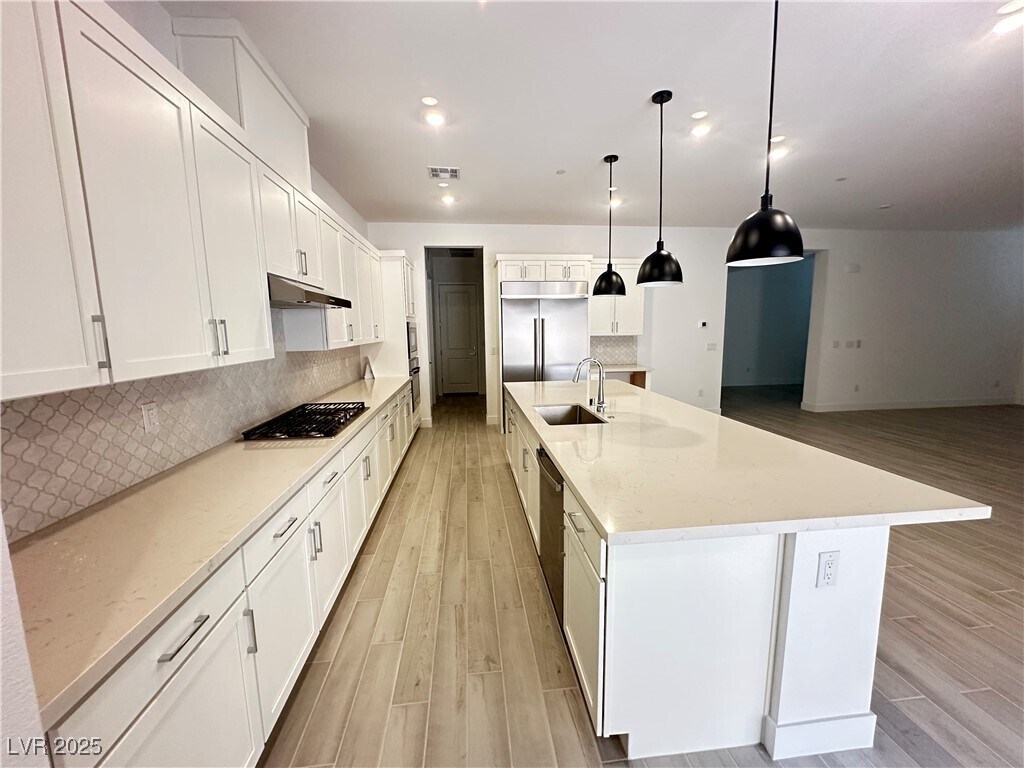 Single-story home is located in the gated community of Portofino at Lake Las Vegas,Step into the foyer to find two secondary bedrooms, a shared full bath, and a versatile flex room on one side, with a powder room on the other. The heart of the home unfolds with a spacious gathering room that flows seamlessly into the dining area and gourmet kitchen, complete with a large island and an expansive walk-in pantry. A covered outdoor living space is perfect for enjoying warm desert evenings. Tucked at the back of the home, the luxurious primary suite offers a spa-like en-suite with dual vanities, a large shower, a private water closet, and a generous walk-in closet with direct access to the laundry room. Structural options added include: Electric fireplace, extended kitchen island, stacking sliding glass door at gathering room, super shower at primary bath, door at primary closet to laundry.