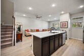 Welcome to this light and bright corner unit townhome. An open concept living, dining, and kitchen design provides flexible space for entertaining, relaxing, studying, or working from home. The kitchen has a modern aesthetic and features an oversized island, quartz countertops, recessed lighting, and Whirlpool Stainless Steel appliances. Elegant wrought iron railing frames the stairs adding an additional designer feel. An especially large primary suite features custom built-in shelving-ideal for display or storage. The luxurious primary ensuite with oversized shower and added cabinetry has a large walk-in closet. Two other bedrooms and a spacious full bath with added cabinetry are upstairs providing added privacy. An upstairs laundry room with storage is conveniently located between the bedrooms. The attached 2 car garage has new epoxy floors for added ease of care and durability. Enjoy a carefree, low maintenance lifestyle as the HOA takes care of the yard and grounds! With easy access to highways and Universities, this property's location makes it the perfect place to call HOME!