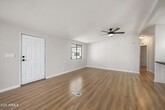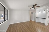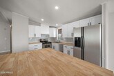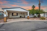 Welcome to your beautifully renovated retreat in Apache East Estates 55+ community! This 2-bedroom,2-bath home sits on a desirable corner lot with an expansive,private yardperfect for relaxing,gardening,or entertaining. Step inside to a stunning modern farmhouse design featuring wide-open living spaces,rich wood-look flooring,and abundant natural light. The kitchen is a showstopper with its crisp white cabinetry,butcher-block style counters,subway tile backsplash,and striking black column accents with pendant lighting that frame the breakfast bar. The seamless flow into the spacious living and dining areas makes this home ideal for both everyday comfort and hosting friends. Both bathrooms have been tastefully updated,while the oversized primary suite offers ample space for rest and rejuvenation. Added peace of mind comes with a newer roof and HVAC system,ensuring years of worry-free living. Enjoy the Arizona lifestyle on the huge front patio or retreat to the back patio overlooking your private yard. A wide two-car carport provides covered parking,while the large lot gives you the privacy rarely found in community living. Apache East Estates offers resort-style amenities including a heated pool & spa,clubhouse with community kitchen,library,billiards,bocce ball,and shuffleboardplenty of ways to stay active and social year-round. This home combines thoughtful design,modern updates,and a prime lot location to deliver the ultimate in comfort and style. Don't miss this rare opportunity!