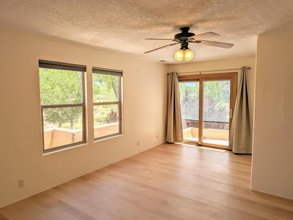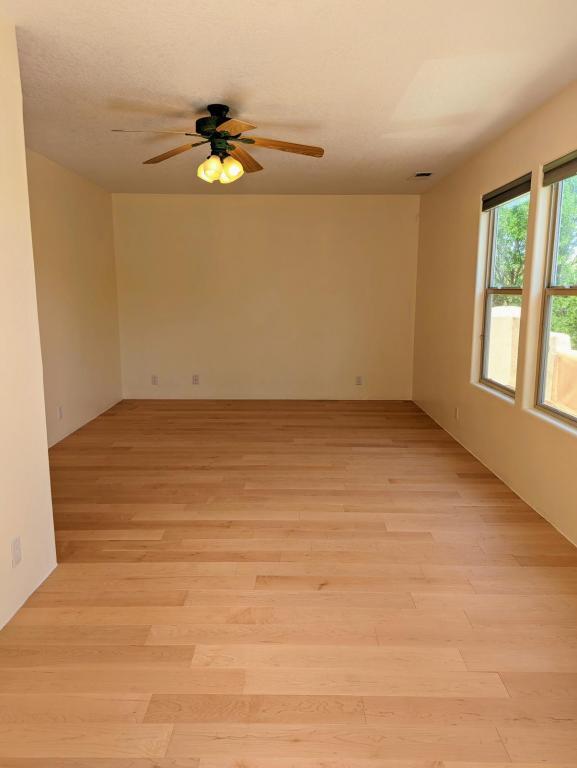 Quiet Gated Community with Stunning Views and Easy Access to the Rio Grande Bosque... 3 Bedroom, 2 1/2 Bathroom, 2 Story Home adjoins Bosque Open-Space. Available February 1st! The Primary Suite on the second level has a phenomenal, recently installed designer walk-in closet. The southwestern architecture is bathed in light with high ceilings and beautiful maple wood floors including the Primary Suite. The entire home has been recently painted and there is newer carpet in 2 of the bedrooms. The tile flooring on the main level has comfortable and quiet radiant floor heat and all-important refrigerated air conditioning throughout the home for efficient cooling comfort in the summer months. Enjoy the huge outdoor patio and covered area for relaxing and entertaining and soak in the amazing views of the Bosque and Sandias from the second-level balcony. This fabulous home is conveniently located near Montano and Coors. Don't miss out on this exceptional opportunity, Contact us today to discuss/schedule a tour!