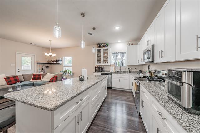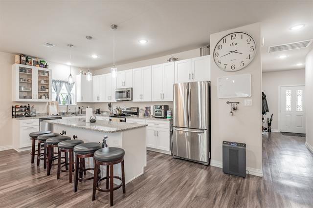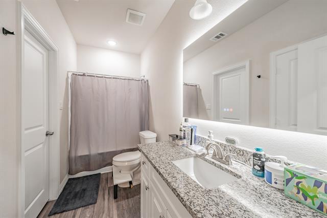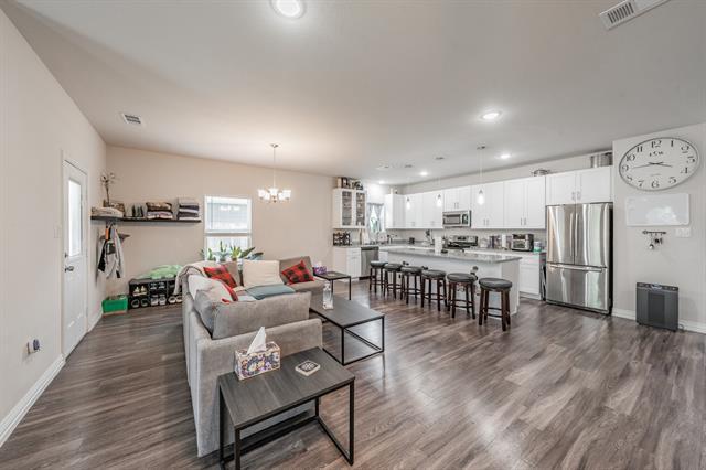 House is in like new condition with upgrades. The open concept layout extends the appear of the rooms, beautiful luxury vinyl through out the entire house. The kitchen has a large island to hang out with family and friend, surrounded by granite counter tops. The open concept area allows you option to select how to arrange furniture. The master bedroom is opposite side from other two bedrooms. The master bathroom is roomy with the walk in closet inside the bathroom. The yard is the biggest on the block due to being on the corner, wonderful place to enjoy nice weather. Patio is covered , chairs in photo will be left for usage. Pet friendly for a one , under 40lbs. Showing are weekends only