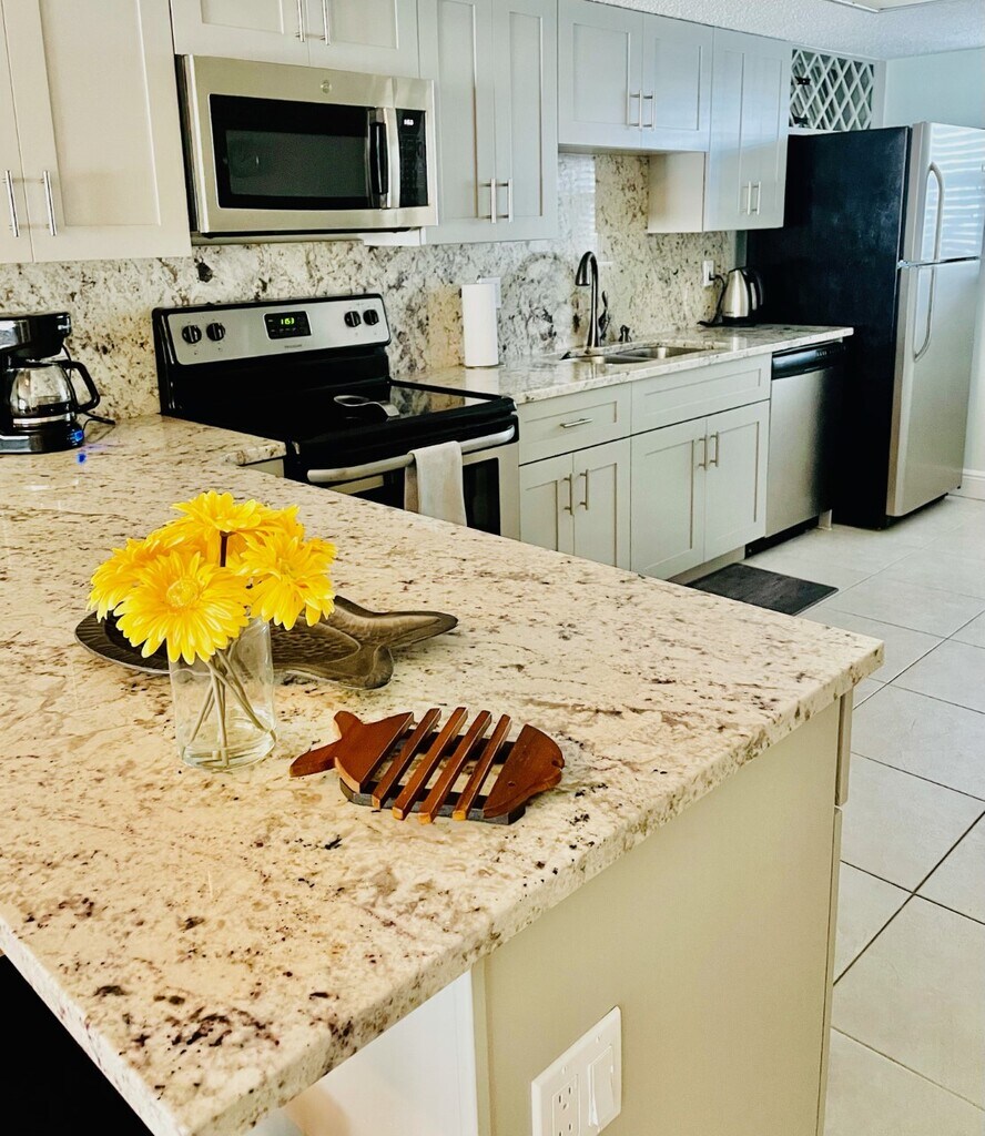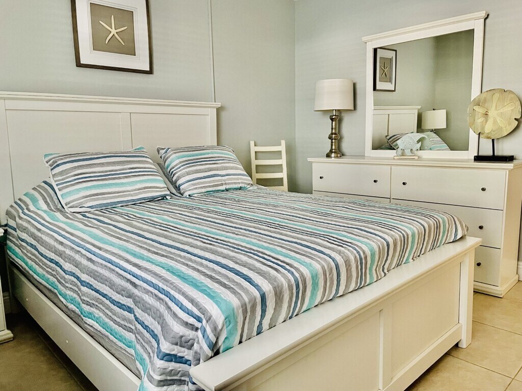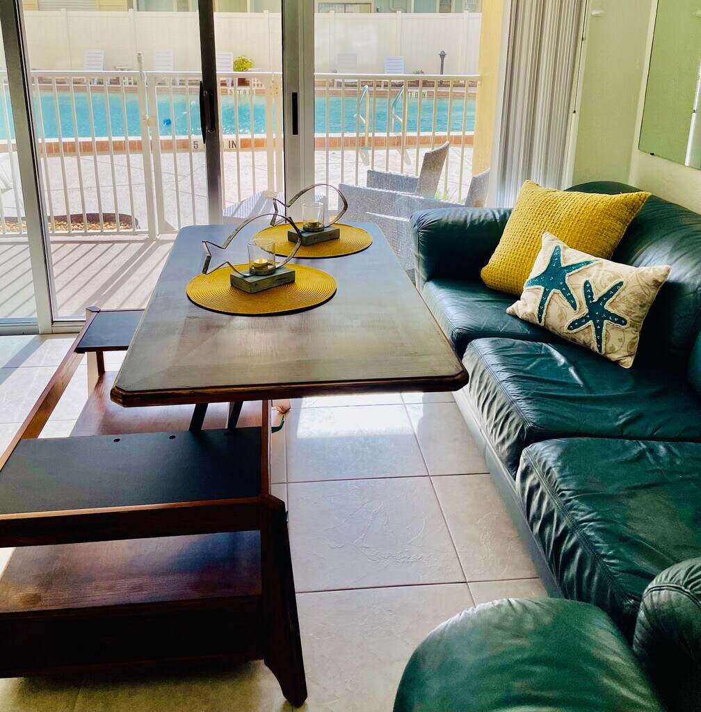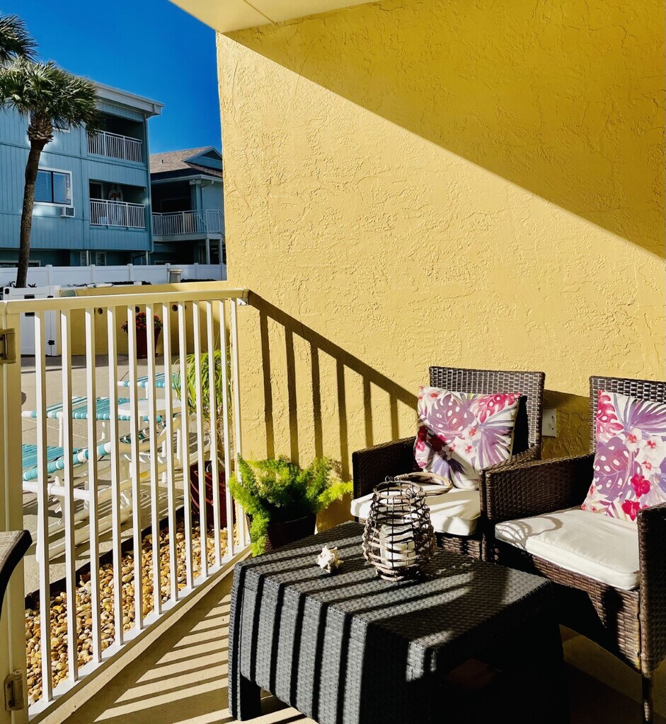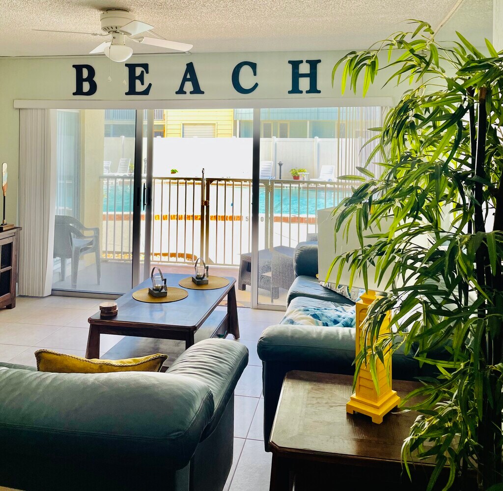 Beautifully furnished vacation beach condo, on 1st floor, with balcony facing the large pool. Only a few steps away from the beautiful New Smyrna Beach, so you can take the provided beach chairs and towels with you, and enjoy the sun and the surf! Unit accommodates 4, with a King bed in the Master Bedroom and a Queen in the guest bedroom. Unit boasts all ceramic tile floors, a large Roku TV in the living room and medium Smart TV in the Master bedroom. Kitchen is fully furnished, so you won't have to bring anything other than food! This is a vacation rental - long weekends, weekly, or monthly rentals are welcome!