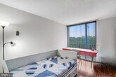 Nestled within the serene community of The Carlton, this charming condominium offers a perfect blend of comfort and convenience. With a contemporary architectural style and a well-maintained brick exterior, this unit is designed to provide a warm and inviting atmosphere. Step inside to discover a thoughtfully laid-out space of 568 square feet, where every corner is filled with potential. The kitchen is equipped with modern appliances, including a built-in microwave, dishwasher, gas oven/range, and refrigerator, making meal preparation a delight. The living area is bathed in natural light, offering stunning views of the surrounding creek, park, and lush greenery. Imagine sipping your morning coffee while taking in the panoramic vistas or unwinding in the evening as the sun sets behind the trees. This tranquil setting creates a perfect backdrop for relaxation and rejuvenation. Residents of The Carlton enjoy a wealth of amenities designed to enhance their lifestyle. The community features a refreshing outdoor swimming pool, a fitness center for your daily workouts, and a sauna for unwinding after a long day. Gather with friends in the game room or host events in the party room-there's something for everyone here. The convenience store and community center add to the ease of living, ensuring that everything you need is just a stone's throw away. Parking is a breeze with an underground garage space included, providing secure and easy access to your home. The association fee covers a multitude of services, including electricity, water, and maintenance of common areas, allowing you to enjoy a worry-free lifestyle. This condominium is not just a place to live; it's a community where you can thrive. With its ideal location, modern conveniences, and beautiful surroundings, this property is a wonderful opportunity for anyone looking to embrace a comfortable and fulfilling lifestyle. Don't miss your chance to make this inviting space your new home!