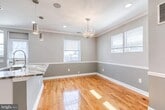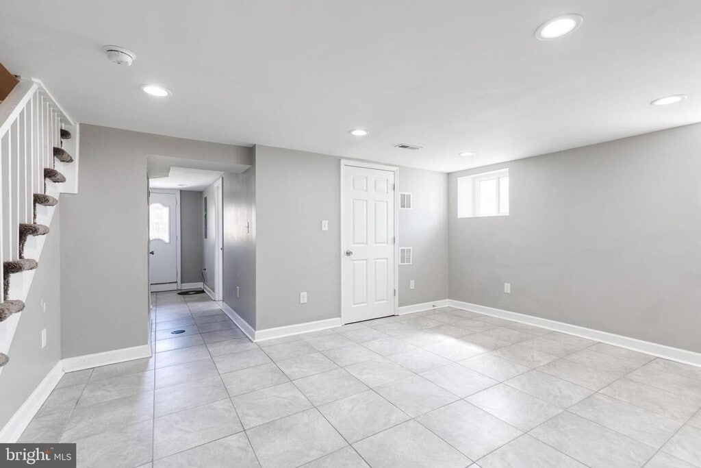 Welcome to this beautifully renovated end-of-group townhome in Baltimore, where thoughtful upgrades, modern finishes, and classic charm come together to create a truly inviting home. Perfectly positioned on a corner, this property offers extra natural light, added privacy, and additional outdoor space that interior townhomes simply can’t match. Begin your day on the welcoming front porch, an ideal place to sip your morning coffee, relax in the evening, and enjoy the friendly neighborhood atmosphere. Step inside to discover a bright, open interior filled with natural light, complemented by gleaming hardwood floors, contemporary cool gray tones, and abundant recessed lighting throughout the main level. A stylish electric fireplace anchors the living space, creating a warm and cozy focal point while adding modern ambiance. The beautifully updated kitchen is both functional and eye-catching, featuring crisp white shaker cabinetry, sleek granite countertops, stainless steel appliances, a classic tile backsplash, and a spacious center island with breakfast bar seating and elegant pendant lighting. The kitchen flows seamlessly into the oversized dining area, creating the perfect open-concept layout for hosting gatherings, holiday dinners, or casual everyday meals. Upstairs, you’ll find three generously sized bedrooms, each offering comfortable living space and ample closet storage. The fully renovated bathroom showcases custom tile work, modern fixtures, and stylish finishes, providing a spa-like feel while maintaining everyday practicality. The finished lower level expands the home’s living space even further, offering incredible versatility. Whether you envision a recreation room, media room, playroom, home gym, office, or creative studio, this flexible space can easily adapt to your lifestyle. The lower level also includes a fourth bedroom and a full bathroom, making it ideal for guests, extended family, or a private in-law suite. Step outside to the fully fenced backyard, providing a private outdoor retreat perfect for relaxing, entertaining or gardening. The added privacy and space make it a wonderful extension of the home’s living areas. With its top-to-bottom renovations, spacious layout, and desirable end-of-group location, this move-in-ready home offers the perfect combination of comfort, style, and convenience. Don’t miss the opportunity to make this exceptional home your own. Welcome home!
