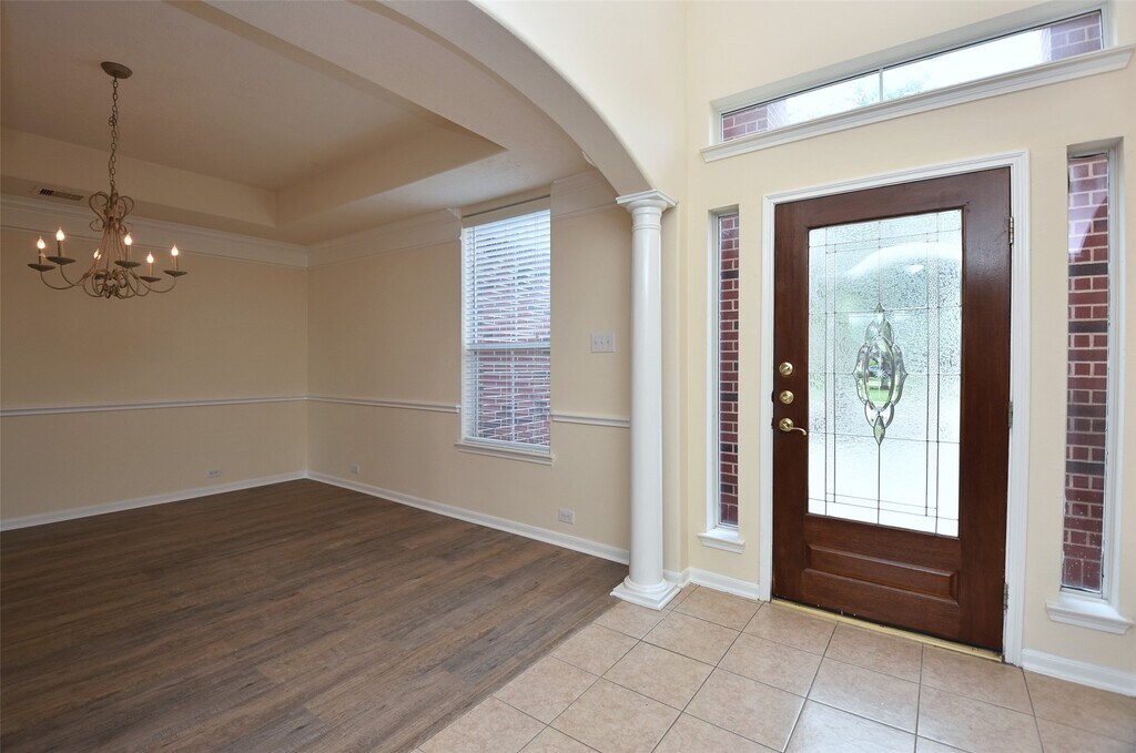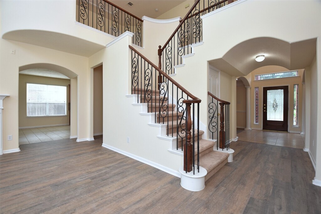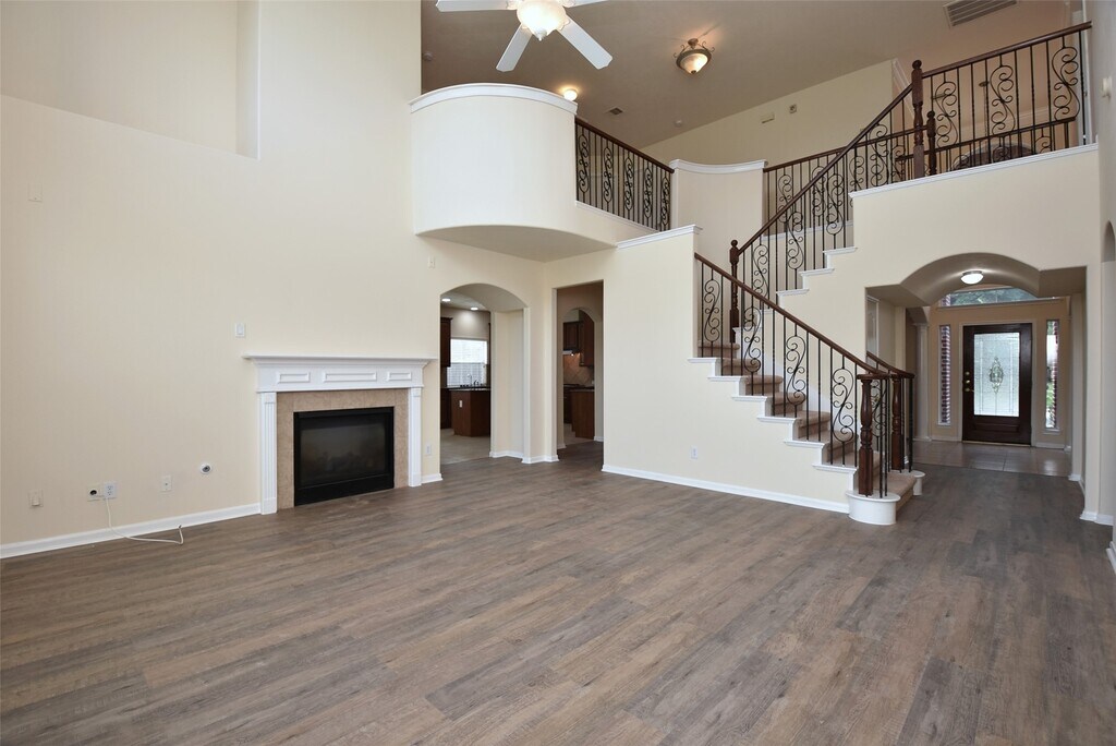 Nestled in a private lake community,this gated property boasts spacious rooms,formal dining,and formal living areas. With one bedroom downstairs and a full bath,it offers convenience and comfort. Zoned to top-rated Fort Bend Schools,it is perfect for families. The open floor plan is ideal for gatherings,featuring high ceilings,a primary suite,and three additional bedrooms upstairs. Enjoy new engineered wood flooring throughout the main level,a cozy family room with a fireplace,and a quiet backyard. Freshly painted interior and a new driveway add to the charm of this home. MLS# 36813701