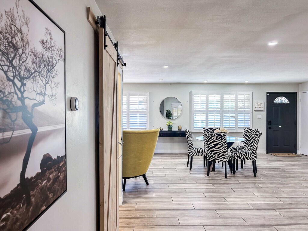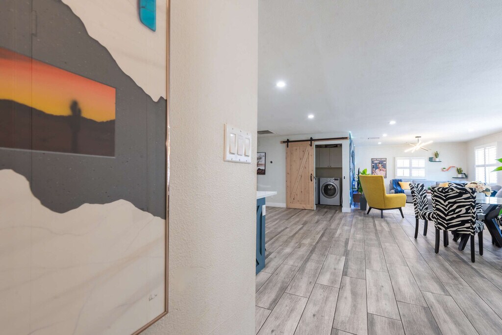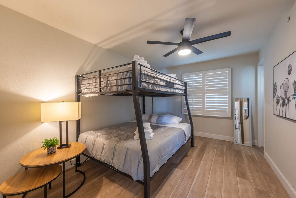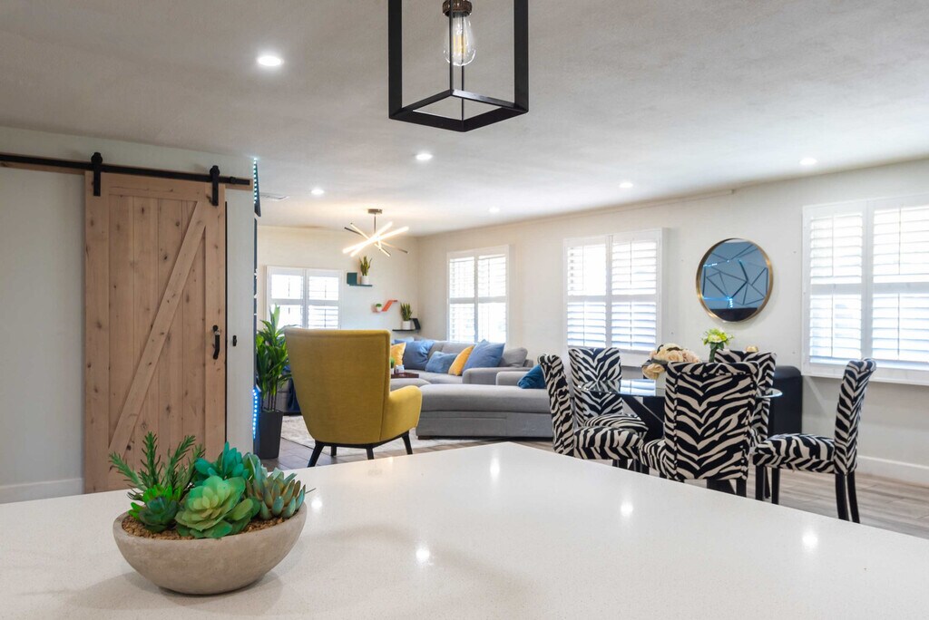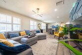 Enjoy a wonderful stay and feel at home in this beautiful 4-bedroom home in sunny Phoenix, perfect for families or groups, it comfortably sleeps up to 10 guests. The home features an open-concept living area, a fully equipped kitchen with stainless steel appliances and granite countertops, and a spacious backyard designed for entertainment with a hot tub, basketball court, putt-putt, cornhole, grill, and firepit. The kitchen is stocked with cookware and utensils, including a coffee maker and toaster. There are three beautifully designed bathrooms, including a master bathroom with a walk-in shower and dual sinks, a second bathroom with a shower/tub combo, and a third bathroom with another walk-in shower. Fresh towels and toiletries are provided. Guests will be able to park their vehicles in the driveway and utilize the laundry room. Located in the North Mountain neighborhood of Phoenix, this home is known for its beautiful desert landscapes and proximity to hiking spots like the North Mountain and Shaw Butte. The neighborhood has a suburban feel, yet is still close to downtown Phoenix for all the city amenities. The home is 16 miles or 30 minutes from Phoenix Sky Harbor International Airport (PHX). Quiet hours are between 10 PM and 8 AM. No parties or events are allowed, and there is a $1,000 fine for violations. No smoking is allowed inside the apartment, and there is a $500 fine for violations. No tampering with noise monitors or cameras is allowed, and there is a $500 fine for violations. Please be respectful of neighbors and follow quiet hours. No additional guests are allowed at the home who were not on the reservation. Guests are liable for any damage to the property and should report any damages noticed at check-in. We have cameras outside of the home for your safety, and they will be recording during the reservations. Tampering with these will result in a fine. [SI]