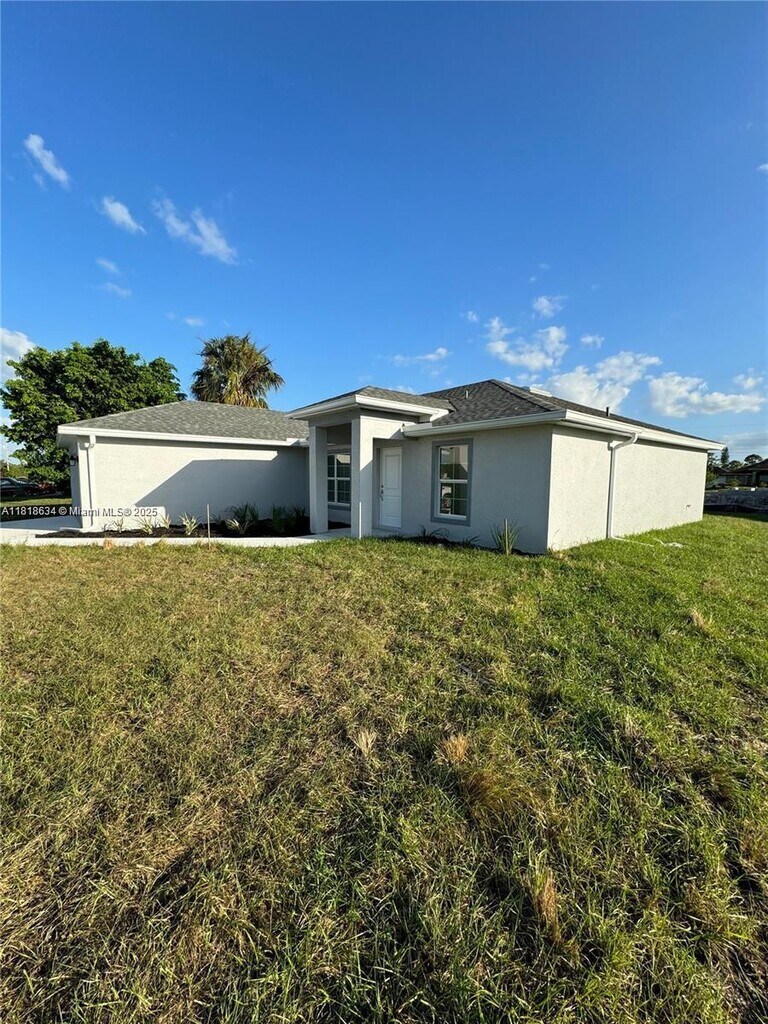 This beautiful new construction home, built in 2023, offers 4 spacious bedrooms and 2 modern bathrooms within 1,614 sq ft of comfortable living space. Situated on a generous 0.25-acre lot in the desirable Lehigh Acres community, this residence features paved roads and convenient access to local amenities. Perfect for families or investors seeking a move-in ready property with potential for customization. Don?t miss the opportunity to own a modern home in a growing neighborhood with easy access to Southwest Florida attractions.