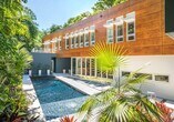Hammock House, a spectacular tropical modern-style home in the gated & historic bayfront community of Camp Biscayne. A state-of-the-art residence w/walls of glass that create a seamless blending of interior & exterior spaces. The home offers the ultimate in privacy & is surrounded by lush tropical landscaping amid a forest of mature oak & mahogany trees. The main house features a stunning Boffi kitchen, a large modern office, staff quarters + 4 ensuite BR’s, including a lavish master suite w/spa-like bathroom featuring a glass-enclosed rain shower, soaking tub & sauna. Additional notable features include a 1/1 guest house and a serene outdoor oasis w/ heated pool, Jacuzzi & summer kitchen. Just steps from the Grove village’s galleries, boutiques, cafes and bayfront parks & marinas.