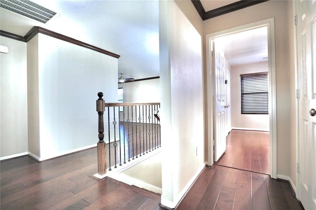 Charming home with 4 Bedrooms,2.5 Baths located caddy corner to the neighborhood park. One bedroom downstairs is the only room that has carpet. Upstairs you will find the spacious game room with 3 bedrooms including the Primary Bedroom. This home has lots of UPGRADES; Wood Floors Upstairs & on Stairway,opened staircase by adding Wrought Iron Railing,Ceiling Fans in all rooms,Covered Patio,Sprinkler System,Solar Screens,Wooden Blinds,Upgraded Light Fixtures and Doorknobs throughout the home. You will love entertaining family and friends in under the COVERED PATIO that runs the whole width of the home complete with ceiling fans. Convenient to I-10,99,and 290. Zoned to Katy ISD! Schedule your showing today! MLS# 95740648