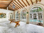 Architectural Marvel, Stunning masterpiece Villa w/beautiful finishes. Exposed hardwood beamed ceilings and coffered ceilings. Iron gates, granite floors & countertops, cocina stone floors, open breezeways, trellises, etched glass picture windows and columns. Concrete roof with w/old world clay tiles, teak plank doors & wood work. Swimming pool w/waterfall & sit down area ,2 large main bedroom suites w/second floor loft style spaces, large family room could be a formal dining room or even a 3rd bedroom & upstairs outside terrace is fantastic for outdoor enjoyment. Separate formal spacious living room, kitchen is spacious w/island, custom etched glass, cabinetry, lots of countertop space, staff quarters, 2 car garage w/ plenty of parking in driveway.