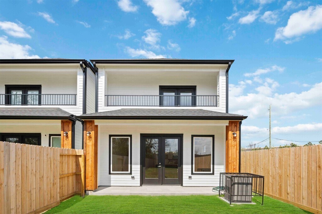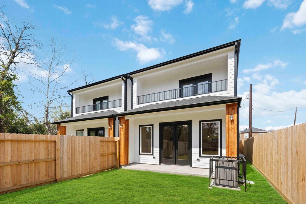 Welcome to this stunning contemporary home offering 3 beds,2.5 baths,& thoughtful living spaces. Impressive outdoor space with a covered patio. Ideally located in Houston’s Northside,this residence combines modern style,smart technology,& functional design. Step inside to an open-concept floor plan filled with natural light,high ceilings,& luxury vinyl plank flooring. The spacious family room flows seamlessly into the dining area & chef-inspired kitchen,featuring Quartz counters,an oversized island,soft-close cabinetry,stainless steel appliances including a 5-burner gas range,microwave,dishwasher,& a bonus wine fridge. Upstairs,all bedrooms are thoughtfully positioned for privacy. The owner’s suite is a true retreat with a private balcony overlooking the backyard,dual walk-in closets,& a spa-like ensuite bath. Secondary bedrooms are generously sized with ample closet space & ceiling fans. Washer,dryer,fridge,& security system included! MLS# 97918097