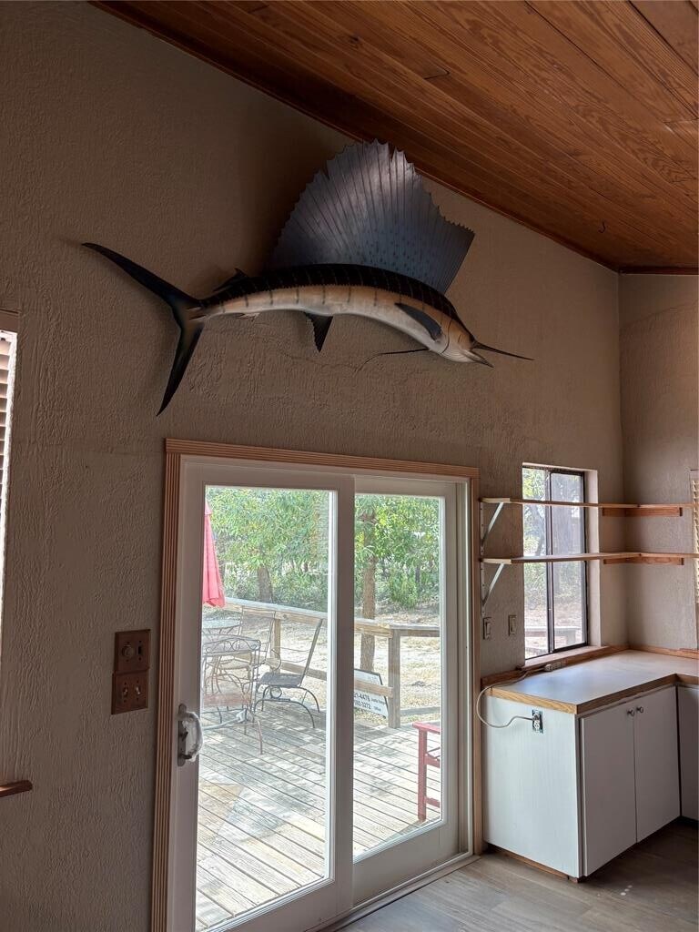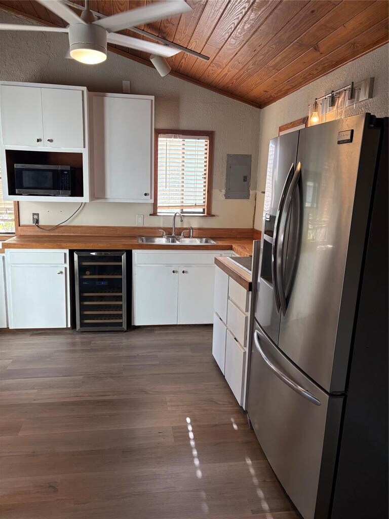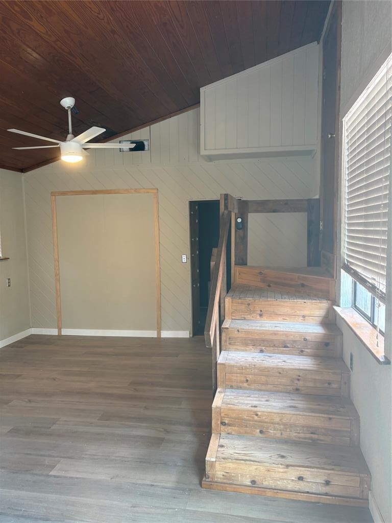 Super Unique house with distinctive stained wood vaulted ceilings & new faux wood floors downstairs. Enjoy excellent natural lighting, new ceiling fans throughout & stainless appliances with wine fridge. There is plenty of parking with 3 differenct deck areas for plants, pets, and entertaining! Enjoy a small green house for your herbs and plants too!