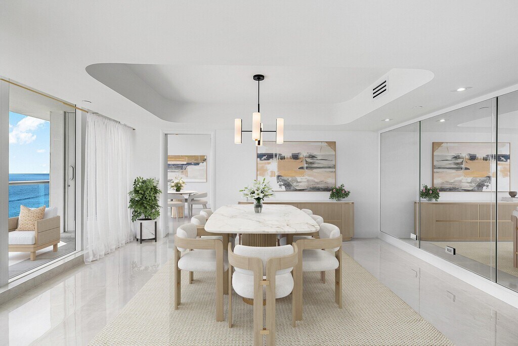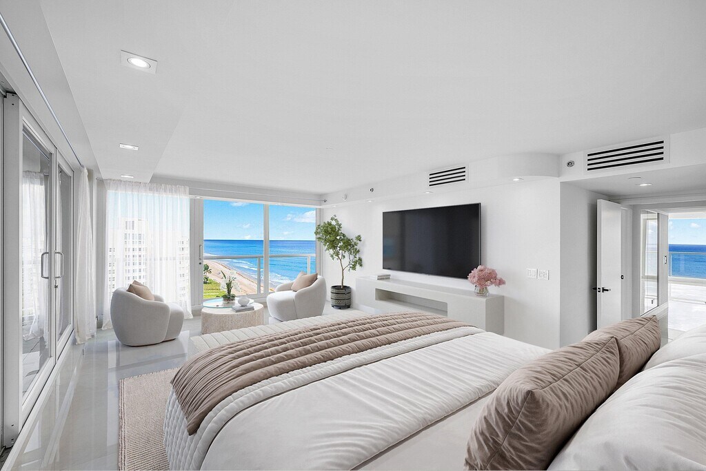 ENDLESS COASTAL VISTAS ABOUND IN THIS NEWLY UPDATED 12TH FLOOR DIRECT OCEANFRONT RESIDENCE OFFERING THE MOST SWEEPING OCEAN VIEWS IN ALL OF HIGHLAND BEACH! THIS CONDO IS CURRENTLY UNFURNISHED HOWEVER THE OWNER IS WILLING TO OFFER IT FULLY FURNISHED AND TURNKEY FOR AN ADDITIONAL THE ENTIRE NORTH HALF OF THE 12TH FLOOR, UNOBSTRUCTED OCEAN VIEWS EXTEND IN ALL DIRECTIONS AND ARE CAPTURED THRU FLOOR TO CEILING WINDOW WALLS OF GLASS! A 700 SQUARE FOOT WRAPAROUND GLASS BALCONY IS UNIQUE TO VILLA NOVA! AN ELEVATOR OPENS DIRECTLY INTO THIS SPECIAL RESIDENCE!CLEAN LINES AND A COASTAL MODERN VIBE REPRESENT THIS INTERIOR RENOVATION. FEATURES INCLUDE LARGE FORMAT PORCELAIN FLOORING, AN OCEAN VIEW CUSTOM KITCHEN WITH ALL NEW JENN AIR APPLIANCES & QUARTZ COUNTERTOPS.