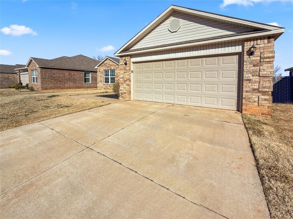 Beautiful 3 bedroom,2 bath ranch with a partial brick front and 2 car garage! The main living area features high ceilings and rich brown flooring,creating a warm,open feel. The cozy kitchen features all essential appliances and a breakfast area perfect for casual dining. Carpeted bedrooms offer comfort and style,while the primary bathroom shines with custom built in shelving and a dedicated vanity chair space. Step outside to a private,fenced backyard that is ideal for relaxing or entertaining. A perfect blend of charm,functionality,and comfort!