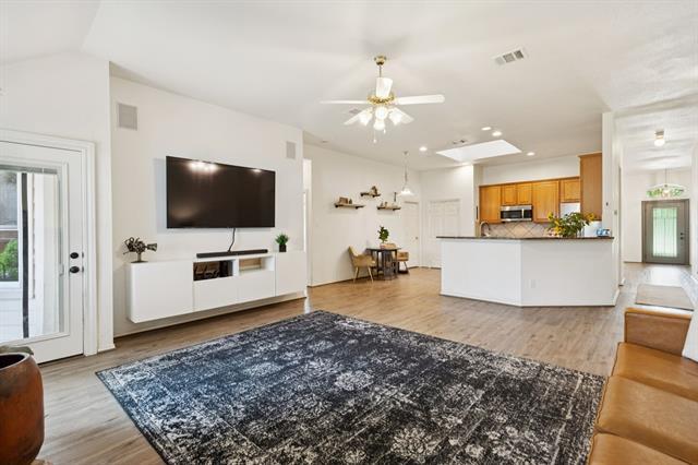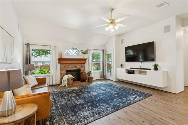 Enjoy incredible energy efficiency in this beautifully maintained 3-bedroom, 2-bath home—featuring solar panel system and brand-new energy-efficient windows and doors that help keep utility costs impressively low. The lush raised garden beds and 19 mature trees on this oversized corner lot offer beauty, privacy, and a sense of sustainability rarely found. The owner describes the backyard like a bird sanctuary—perfect for relaxing, recharging, or entertaining in nature. Inside, you’ll find two spacious living areas and two dining areas, offering flexibility for both everyday life and special gatherings. An oversized formal dining room flows seamlessly into a secondary living space which would make a great home office. The kitchen is generously equipped with an island, granite countertops, 42-inch cabinets, stainless appliances, and a gas cooktop. The main living area boasts a cozy brick fireplace with gas logs and beautiful windows for great natural lighting and views of the expansive backyard. The private primary suite features a large en suite bath, spacious walk-in closet, and large windows with views of the lush yard. Secondary bedrooms are separated from the primary and share a full hall bath. You will love the roomy laundry area with storage cabinets! The HVAC has also been replaced recently! So many incredible features here! Located near great restaurants and shopping, with access to the community pool, scenic trails, and a neighborhood lake a short walk from the home—this home is the perfect balance of comfort, style, and smart upgrades. One pet on a case by case basis and must be approved by the landlord. No smoking, no vaping.