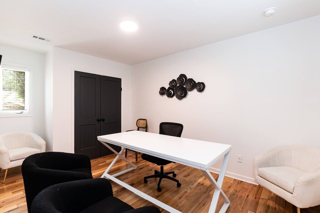 RARE FIND! This Ultra modern three bedroom home is unbelievably gorgeous! Tons of deck space and an enjoyable back yard. Enter into your home to find three spacious bedrooms and three full bathrooms. The primary bedroom has a nice dark accent wall and private balcony as well as a sleek primary bathroom. Main living area is open concept with access to large back deck and screened in porch. All appliances included as well as washer and dryer! Everything is updated in this home with beautiful design! Text for info!
