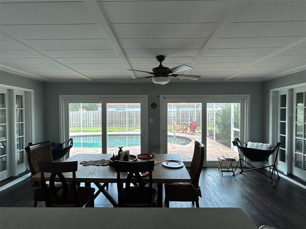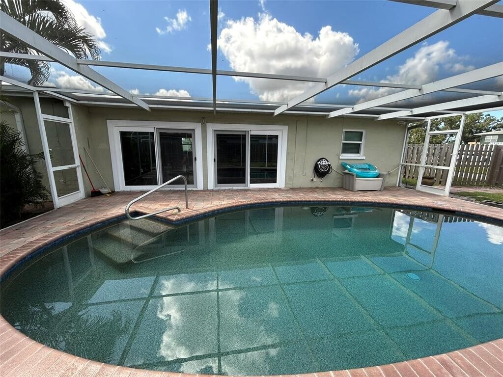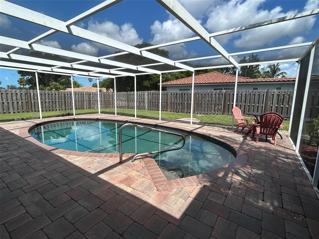 Sarasota Village Green Golf Course 3/2 home on a beautifully landscaped corner lot. The back yard is fully fenced and the home has a spacious lanai and swimming pool. The open floor plan lends itself to views of the back yard from the family room and kitchen. Modern upgrades throughout and new LVP flooring in every room. Attached 1 car garage and convenient parking in the circular driveway. The home has 220V outlet to charge your electric vehicle. MLS# A4665405