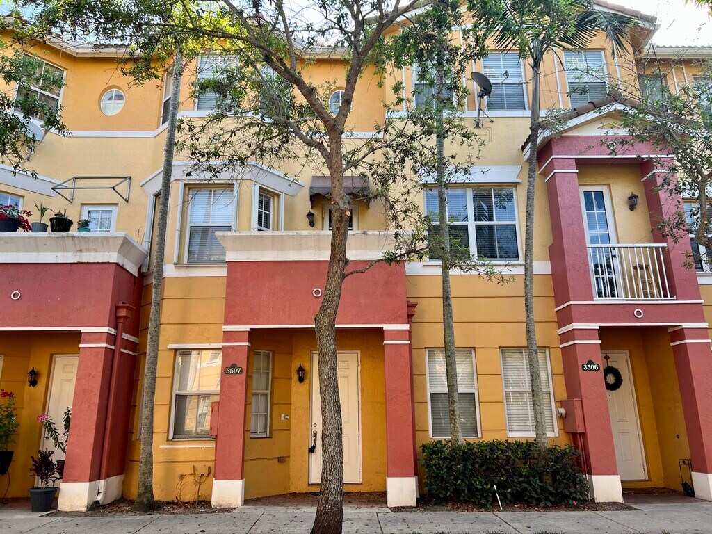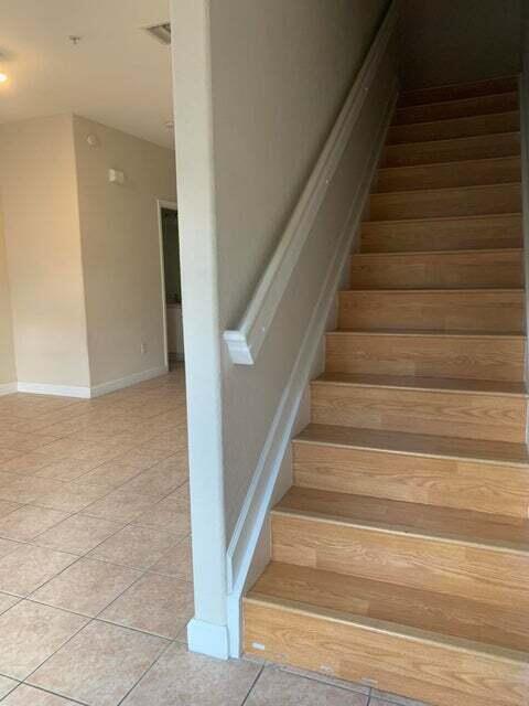 Welcome to this spacious 3-bedroom, 3.5-bathroom, three-story townhouse located in the gated community of Shoma Courtyards. The ground floor offers a private 1-car garage along with a bedroom and full bathroom, perfect for guests or multi-generational living. Upstairs, the main living area features tile flooring, an open layout, and recently updated appliances, creating a bright and functional space. The bedrooms and staircase are finished with wood laminate flooring, adding warmth and style. This home is move-in ready and comes equipped with accordion hurricane shutters for peace of mind. Shoma Courtyards residents enjoy access to a community pool, and the property is zoned for top-rated Wellington schools. With an excellent location near shopping, dining, and equestrian venues,