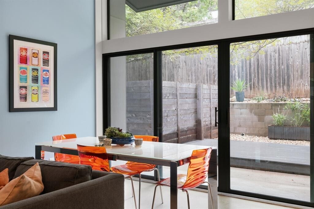 Luxury living in the hottest zip code in Austin; 78704. Situated in a quiet, gated community between S. Congress and S. 1st, this stunning, freestanding home features 2 bedrooms, 2.5 bathroom, 2 living areas and an attached 1 car garage. Designer detailing abounds throughout both levels of the home; glossy concrete flooring on the main floor, carpet on the 2nd and 3rd floors, modern cabinetry in the kitchen and high-end lighting in both the kitchen and dining. As you step in through the front door, you will be greeted by a generous space that encompasses the dining room, living room and kitchen. Floor-to-ceiling glass brings the outside in, creating a bright, airy feel in this gorgeous, open concept floor plan. Neutral toned walls flawlessly compliment the light colored, concrete flooring. The gorgeous kitchen features quartz countertops, tile backsplash and tons of storage space. Stir up your favorite dishes with stainless steel appliances including a gas range and built-in microwave. Head up the first set of steps to the stunning owner's suite that feels like a five-star hotel. The spa-like bath is the picture of relaxation with a dual vanity, soaking tub and separate shower. On the 3rd floor you will find a great flex space that can be used as a 2nd living, game room or office. Oversized sliding glass doors in the living room lead to a private backyard space with a large patio, new deck and xeriscaped yard. Walking distance to an abundant amount of dining and entertainment options including Cosmic Coffee, Plaza Colombia, and Crux Climbing Gym. Only 15 mins to the Airport! Stylish, easy-care living at its best! MLS ID 1743567