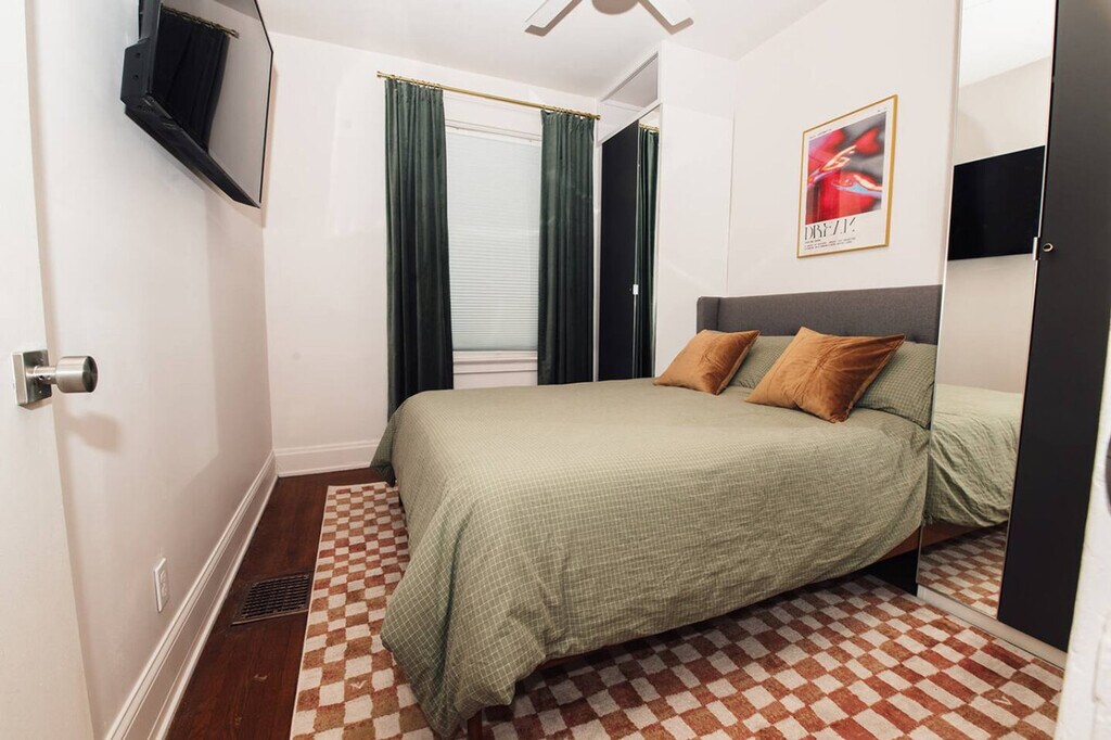 Nestled in the sought-after Hyde Park neighborhood, feel at home in this 3-bedroom apartment that blends classic charm with modern comfort. Ideal for groups of 2-4 or a small family, this apartment is a gem that allows you to enjoy what the area has to offer. There are some steep stairs leading to the basement bedroom, so please be careful when using them to stay safe. The fully stocked kitchen features a full-size gas stove, microwave, refrigerator, Nespresso coffee maker (pods available), Brita water filter, toaster, utensils, dishes, pots, pans, baking sheets, paper towels and hand towels. The open concept from the kitchen to the living room is perfect for preparing a family dinner that can be enjoyed in the dining area or on the front porch. Guests are welcome to park in the driveway, and there's also free street parking available for your convenience. A baby travel crib is provided. Just 10 minutes from downtown, this apartment is also within walking distance of Cincinnati's popular coffee shop, Coffee Emporium, and diverse dining options, offering the best of both worlds. Enjoy unbeatable convenience whether you're in town for a festival, catching a game with the Cincinnati Reds, Cincinnati Bengals, or FC Cincinnati, cheering on the Cincinnati Bearcats, or exploring amazing performing arts venues, museums, healthcare facilities, and the corporate scene. The apartment is within walking distance to various eateries and bars, coffee shops, tennis courts, and a park, including Bangkok Bistro, Cafe Mediterranean, China Gourmet, Coffee Emporium, Dutch’s Beer Garden & Restaurant, Forno Osteria Italian Restaurant & Bar, Hap’s Irish Pub, Papa John’s, Saint Francis Pizza (Pizzeria), and United Dairy Farmers (Convenience Store & Gas). Within a 2-5 minute drive, you'll find Kroger Grocery Store & Walgreens, Hyde Park Shopping Plaza (Shops & Eateries), Hyde Park Square with Boutique Shops & Eateries/Bars, Cincinnati Observatory, Ault Park, and Wasson Way Trail Entrance (Biking/Walking/Running). A 10-15 minute drive will take you to Downtown Cincinnati, Over the Rhine District, Great American Ballpark, Paul Brown Stadium, Findlay Market, Cincinnati Zoo, University Of Cincinnati, Xavier University, and Hard Rock Casino. There is a $200 cleaning fee for any smoke smell upon checkout. No parties or events and no unregistered guests are allowed. Please respect the neighbors and observe the noise curfew at 10 PM. Please respect check-in and check-out times. Please take care of the furnishings, as you have to pay for damages. Please don’t rearrange the furniture. Please take the trash out before you leave. No illegal substances are allowed on the premises. [SI]