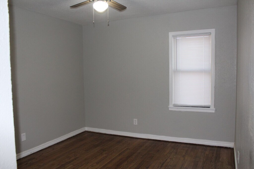 Freshly Painted Refinished Hardwood floors throughout Big closets Ceiling fans in each room Big kitchen New lighting New counter tops 5 burner gas range Refrigerator New flooring Garbage disposal New blinds in each room Updated Bathroom New vanity New Mirror 1 car garage - NOW WITH AN OPENER!