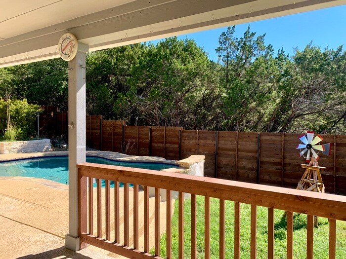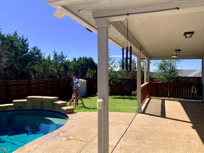 Swimming pool maintained with waterfall by owner! Solar panels for huge savings on electric! Large home office, extra parking for boat or golf cart! Lago Vista Lake access! Move in special of $2700 for first three months of a 12 month lease or $2700 for the first 3 months of a 24 month lease (then rent will increase to $3000 for the remainder of the lease). Tenant pays $235 a month for pool service and Three bedroom home with large office, swimming pool, thirty-two solar panels and access to private Lake Travis boat ramps & parks available now! Save money in this highly energy efficient home that includes two Tesla powerwalls, Tesla wall charger, energy efficient nest thermostat/smoke & co detectors/lights thru out the house, solar lights 360 around the home and energy efficient refrigerator, ac hvac, Japanese water efficient toilets in two of the bathrooms. Home includes big kitchen island, a whole house water treatment system with a triple filtration drinking water system covered patio overlooking swimming pool and gorgeous backyard with horizontal cedar fence! Space to store small boat or a trailer in the side yard! Pool maintained by owner! Desirable lake community offers access to multiple private Lago Vista parks with beaches and boat ramps. Fast access to golf courses! Big amenities and smaller electric bills! Close to the Lucky Rabbit, Flat Creek Estate Winery & Vineyard, Lago Vista Brewing Company. Fast access Cedar Park, Leander & Austin. Schedule showing with agent. Pet deposits are non- refundable. All approved applications will be subject to verified online income screening. A fee of $10 will be charged to the applicants for this service in addition to the initial application fee. Pet deposits are non-refundable. Contact us to schedule a showing.