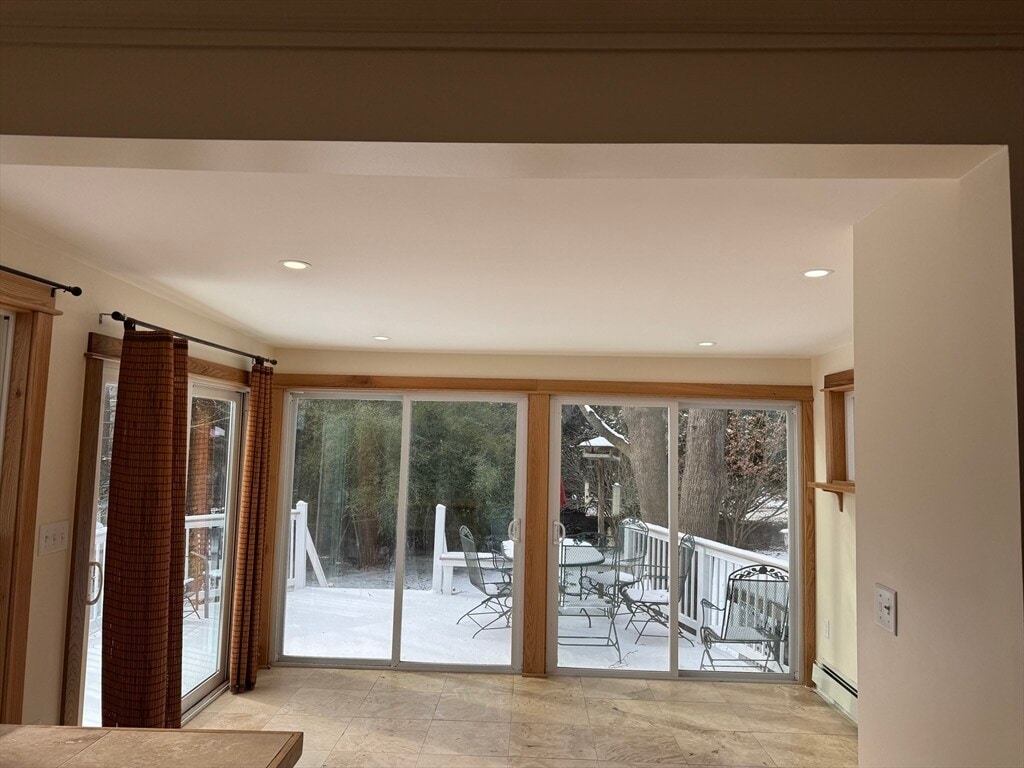 Newly renovated 2 bedroom 1 small room that can be used as a bedroom or office and one full bath. Offers a sunroom,laundry on site and private deck. Rent includes water and electricity,Available now. MLS# 73472817