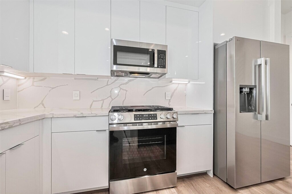 Beautiful modern/contemporary two-story home situated on a desirable corner lot in the Houston City St Rwy subdivision. This home features an open-concept layout with abundant natural light throughout. The kitchen showcases a stunning quartz waterfall island with a built-in wine chiller,sleek cabinetry,and all appliances included. Spacious living and dining areas flow seamlessly,perfect for entertaining or everyday living. The primary suite offers a tray ceiling and a luxurious ensuite bath. Enjoy the benefits of a corner lot with great curb appeal and added privacy. Conveniently located near shopping,dining,and major Houston attractions,this move-in-ready home perfectly blends style,comfort,and modern design. Check it out! MLS# 6705879