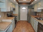 Convenient Northeast location! Located just off Spanish Trail. Only minutes to shopping & hospitals. New wood-look vinyl plank flooring in living/dining room & bedrooms. Living/dining combination with ceiling fan & skylight. Fully equipped kitchen with tile floor & countertops and new stainless steel appliances. Each bedroom has private bath. The back bedroom has a ceiling fan,cathedral ceiling,oversized closet & private balcony. Inside laundry with washer & dryer - units are "as is" - no warranty. Privacy fenced backyard with open deck & storage room. Pets considered with owner approval.