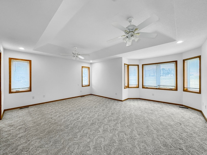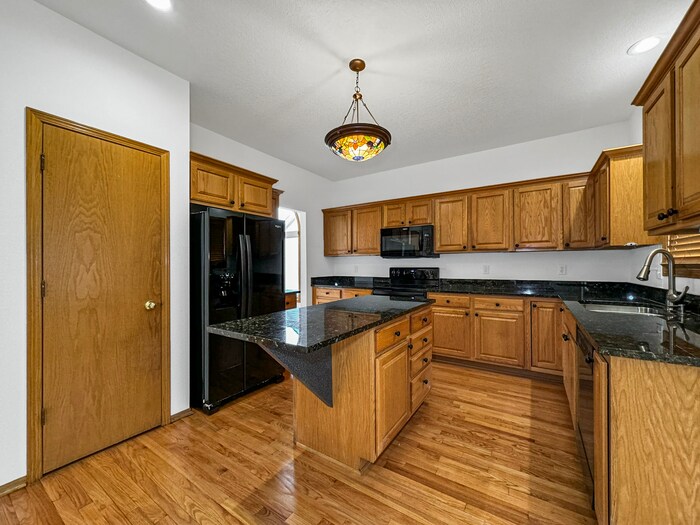 Spacious 5 bedroom, 3.5 bath home For Rent in a quiet, southside neighborhood. Open and inviting floor plan with 2-story entry and family room, providing generous natural light throughout the main floor. Open kitchen with large, center island, black appliances, ample cabinet space and walk-in pantry. Main floor laundry alongside an office/den with see-through fireplace to family room. Upstairs you'll find a huge master bedroom with attached master bath with shower and jacuzzi tub, and large walk-in closet. Additional bedrooms are well-sized and share access to a jack and jill hallway bathroom, making the home ideal for families and larger households. The basement features a large, finished area perfect for a second living area along with another bedroom and full bath. There is also plenty of unfinished space in the basement as well, perfect for storage. Large 3-car attached garage and nice backyard round out this impressive home that you don't often find as a rental. First month FREE with an 18-month lease! Contact us to schedule a showing.