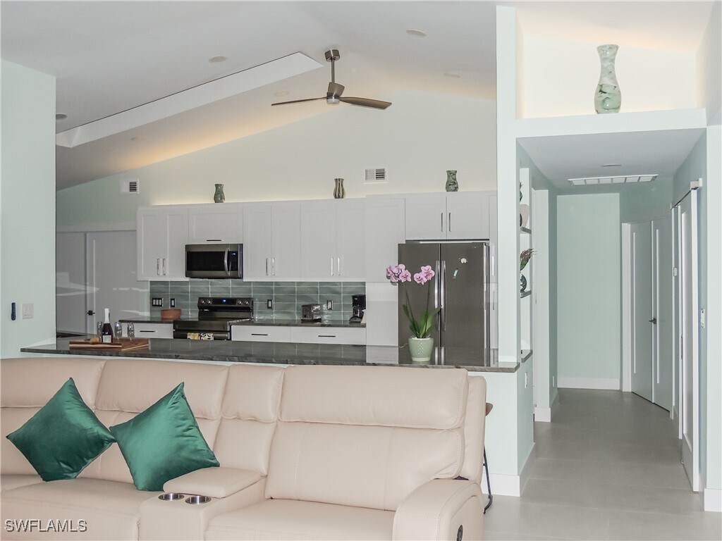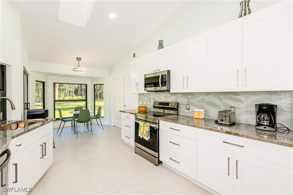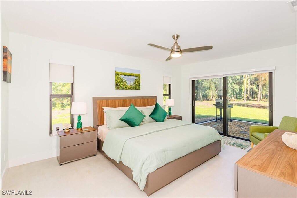 Seasonal or Long-Term Rental — Modern 3-Bedroom Home on 2.5 Acres in Naples Welcome to your private retreat! Experience the perfect blend of luxury and tranquility in this stunning,fully furnished modern home set on 2.5 lush acres—an exceptional find in the Naples area. Available for both short- and long-term rentals,this beautifully designed 2,600-square-foot residence offers contemporary comfort and refined style throughout. Step inside to discover an open-concept living space with vaulted ceilings,skylights,and abundant natural light. The chef’s kitchen serves as the heart of the home,featuring sleek stainless steel appliances,natural quartzite countertops,glass and stone accents,and high-end finishes. Designed with entertaining in mind,the kitchen flows effortlessly into the spacious great room and dining area,all tastefully styled with modern décor. The primary suite offers a peaceful escape with a spa-inspired ensuite bathroom that includes dual sinks and floating vanities. Two additional bedrooms—one with a queen bed and another with a full bed and two twins—provide comfortable accommodations for family or guests. The home also features an elegant guest bath and a screened patio with a heated outdoor shower,perfect for relaxing beneath the sun or stars. Every detail has been thoughtfully designed for both beauty and practicality. All-new hurricane-rated windows and doors provide peace of mind,while porcelain tile flooring and ceiling fans throughout enhance comfort and style. The home includes a laundry room with sink,a spacious circular driveway,and a two-car garage,with plenty of additional space for an RV,boat,or extra vehicles. Enjoy peaceful mornings surrounded by nature,take a walk through your private 2.5 acres,or unwind on the charming wooden swing. It’s a quiet country setting that still offers easy access to everything Naples has to offer. Pet-friendly with approval and free from HOA restrictions,this home provides true freedom and serenity. Landscaping and water service are maintained by the owner,ensuring a hassle-free experience. Conveniently located just half a mile from Collier Boulevard and a short drive to shopping,dining,downtown Naples,and the beach,this home perfectly combines privacy,comfort,and modern elegance.