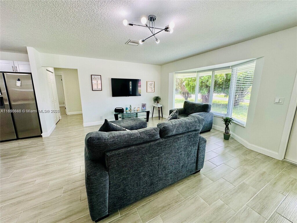 Renovated 3-bedroom2-bathroom corner home in a quiet neighborhood of Boynton Beach. Fully furnished, the property boasts a spacious fenced backyard and a charming screened-in patio, creating the ideal setting for outdoor entertainment and relaxation. The home's interior features impact windows, tiles throughout, an open kitchen with quartz countertops and stainless-steel appliances, and remodeled bathrooms. Additional conveniences include a utility room equipped with a washer and dryer, and a well-water softening system. Two flat-screen televisions are included with the tastefully selected furnishings. Plenty of parking space with a covered carport and a driveway. No HOA approval needed. Great location next to Boynton Beach Mall, minutes from I-95, and just a 3.7 mile drive to the beach.