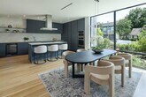 Experience contemporary luxury at its finest in this stunning residence designed by René Gracia of the award-winning RGD+B. Spanning three levels of thoughtfully curated living space, this architectural gem offers sophisticated design, stylish functionality, and an array of outdoor retreats—including a show-stopping rooftop deck. Step inside to a bright, open-concept first floor where the living and dining areas flow effortlessly into a sleek, state-of-the-art kitchen. A dramatic flueless gas fireplace anchors the living room, creating a warm and inviting atmosphere. Just beyond, a private outdoor patio extends your living space—ideal for alfresco dining or evening gatherings. Upstairs, the second level is home to a serene primary suite and a versatile second bedroom perfect for guests or a home office. The top floor features two additional bedrooms, each with its own ensuite bath, offering privacy and comfort for family or visitors. This is more than a home—it's a lifestyle of modern elegance and effortless entertaining.