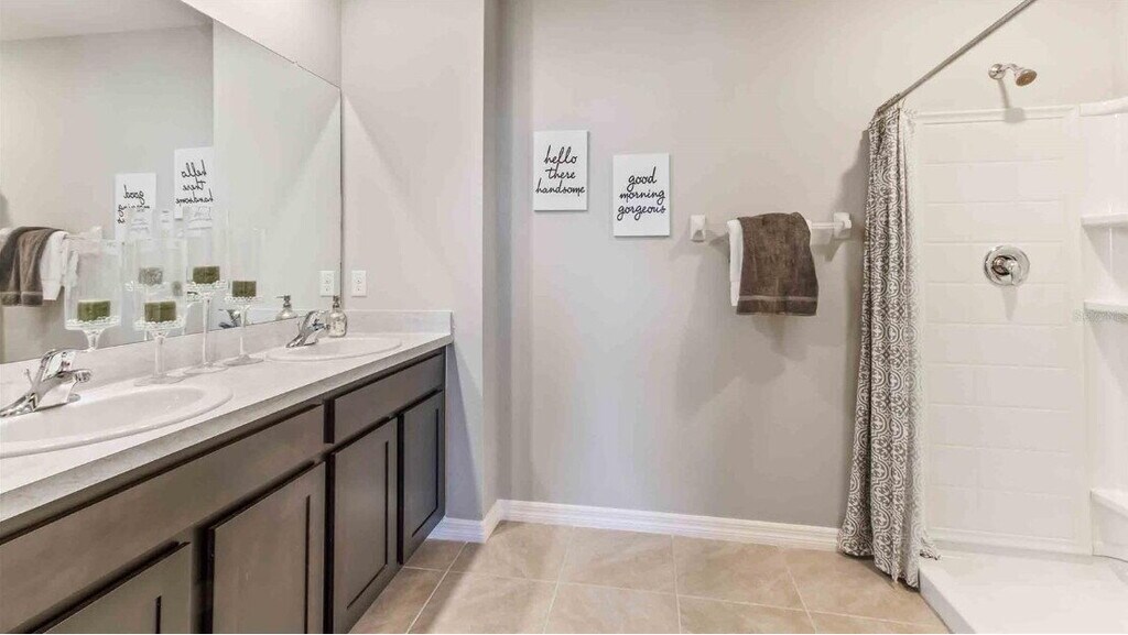 This is a two-story with an open-concept floorplan, featuring five bedrooms, and even an extra loft space upstairs, a perfect multi-purpose space that you could make an office space or a game room for the kiddos. Bedroom 1 is the largest of them all, with a grand walk-in closet with plenty of storage. The Robie is built with plenty of storage space, and a roomy feel, yet still cozy enough to call it home. Pictures, photographs, colors, features, and sizes are illustration purposes only. Paradise Palms Property Management 8130 Lakewood Main St Ste 103 Lakewood Ranch, FL 34202