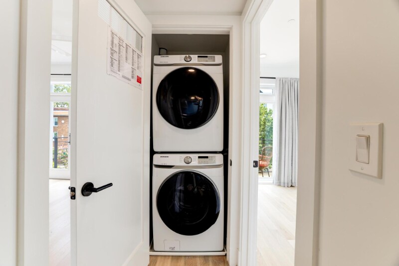 Property Id: 1242858 This modern condo offers a top-floor location with 2 bedrooms and 2 full bathrooms. The open floor-plan kitchen and living room feature stainless steel appliances, including a Samsung refrigerator, gas stove, microwave, and dishwasher. Recessed lighting and large windows provide abundant natural light. The hallway houses a full bathroom with a tub and a laundry closet with stacked Samsung washer and dryer units. The guest bedroom includes a small balcony, two large windows, and a closet. The primary bedroom boasts a walk-in closet, four floor-to-ceiling windows, a large balcony, and a primary bathroom with a double vanity and shower stall. A standout feature is the spiral staircase in the living room, leading to a 300 square foot private deck! "One of the best rooftops of anybody I know!" Off - Street Parking is included at no extra charge. Not Included: *Electric and wifi